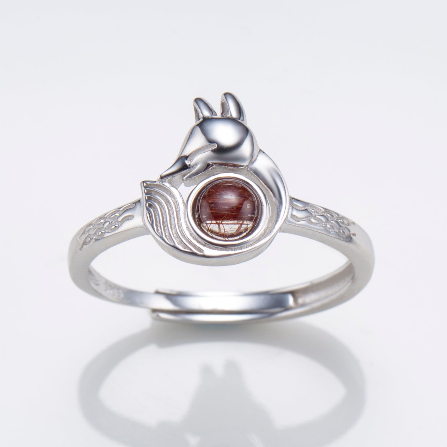 This is a fashion sterling silver ring with natural gemstone of Copper Rutilated Quartz, adjustable size, Cabochon Round shape in size 4*4mm Copper Rutilated Quartz gemstone. Natural gem ring, silver rings wholesale.