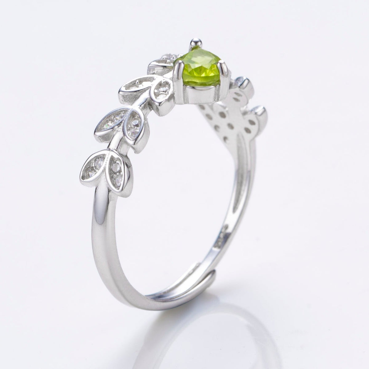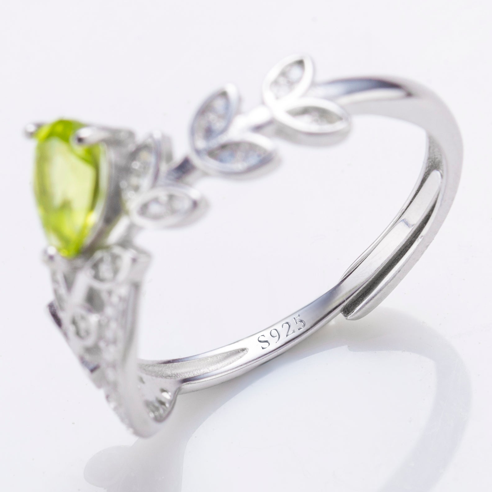 This is a fashion sterling silver ring with natural gemstone of Peridot, adjustable size, pear shape in size 4*6 mm Peridot gemstone. Natural gem ring, silver rings wholesale.