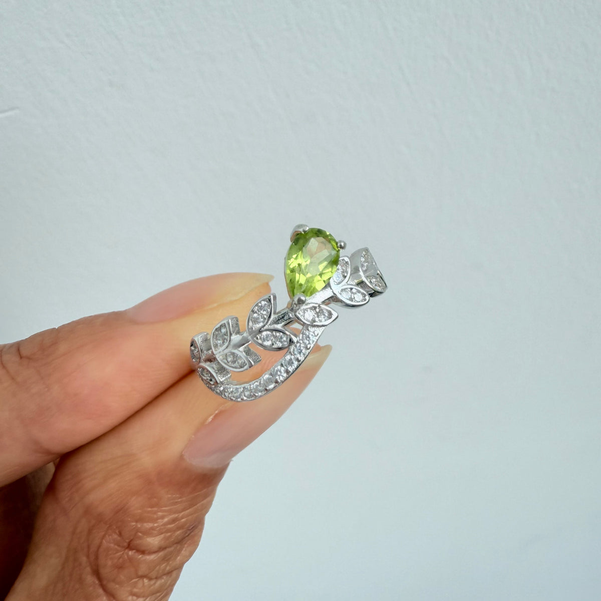 Natural Pear Peridot Sterling Silver Ring