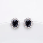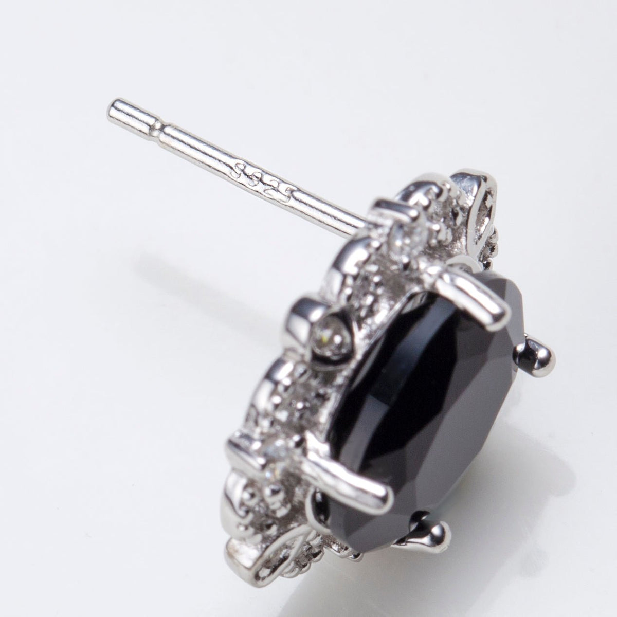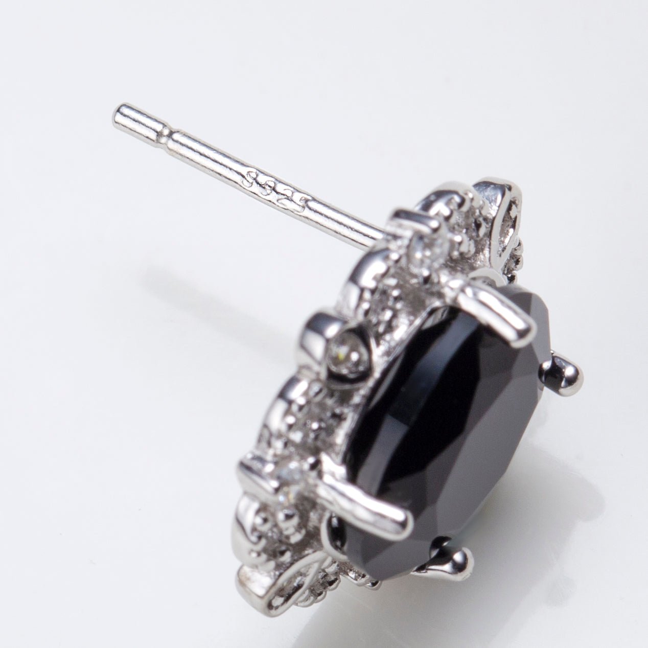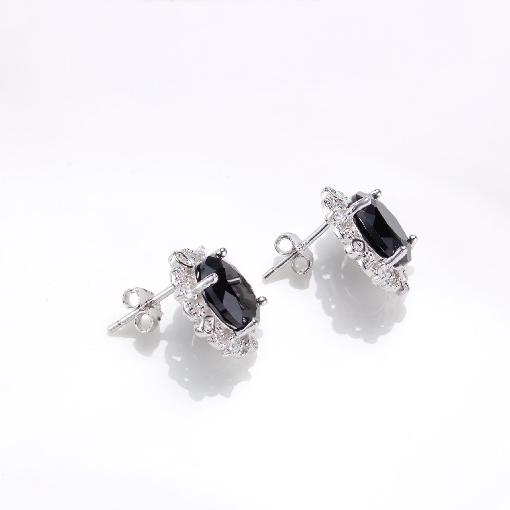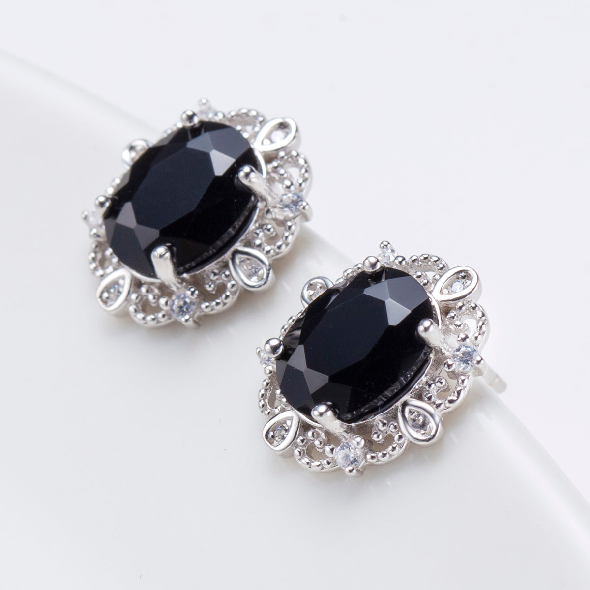 Fashion sterling silver earrings with natural gemstone of Black Onyx, Oval shape in size 7*9mm. Natural gem earrings, silver earrings wholesale.