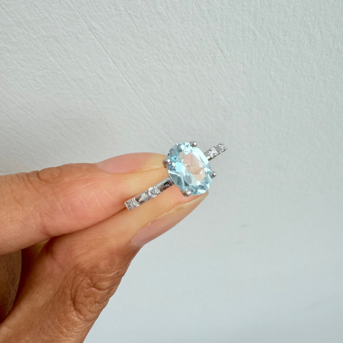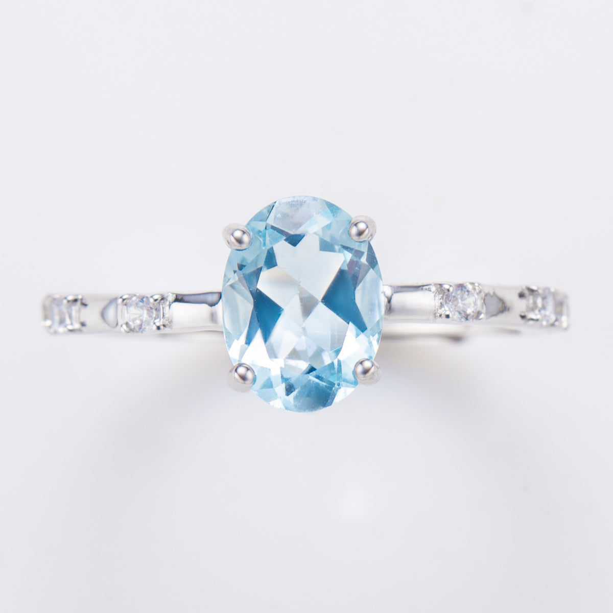 Natural Oval Sky Blue Topaz Sterling Silver Ring
