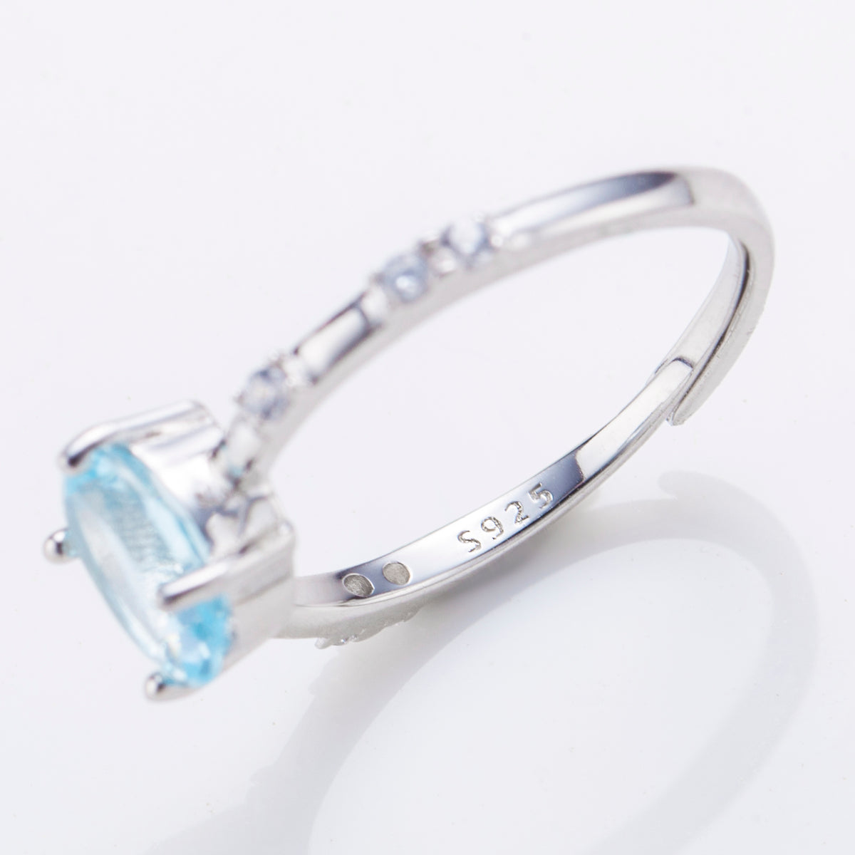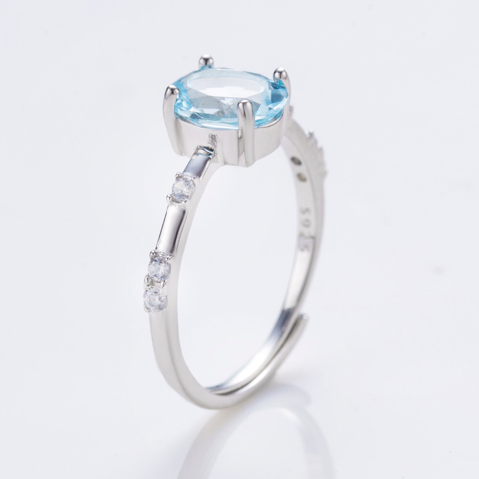 This is a fashion sterling silver ring with natural gemstone of Sky Blue Topaz, adjustable size, oval shape in size 6*8 mm Sky Blue Topaz gemstone. Natural gem ring, silver rings wholesale.