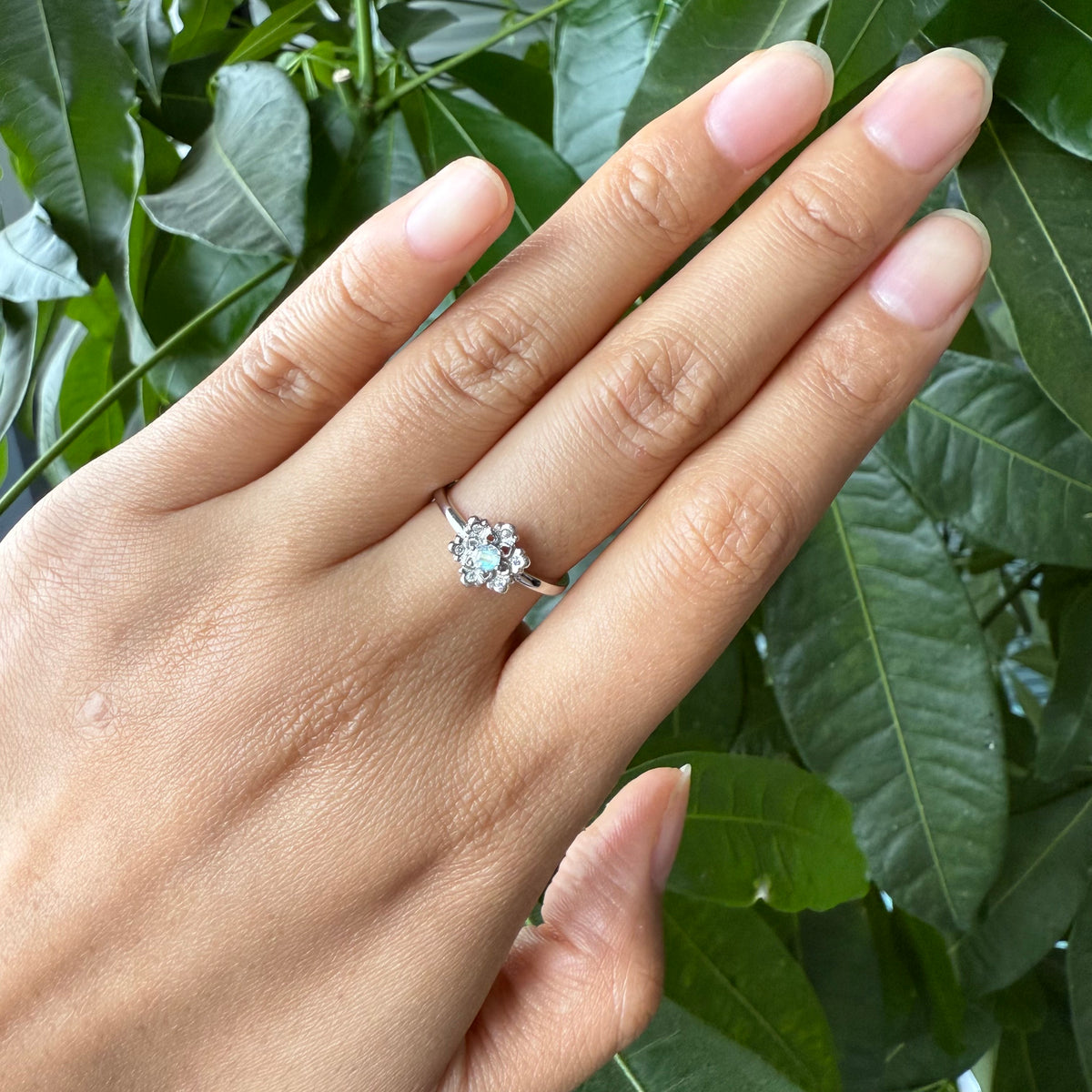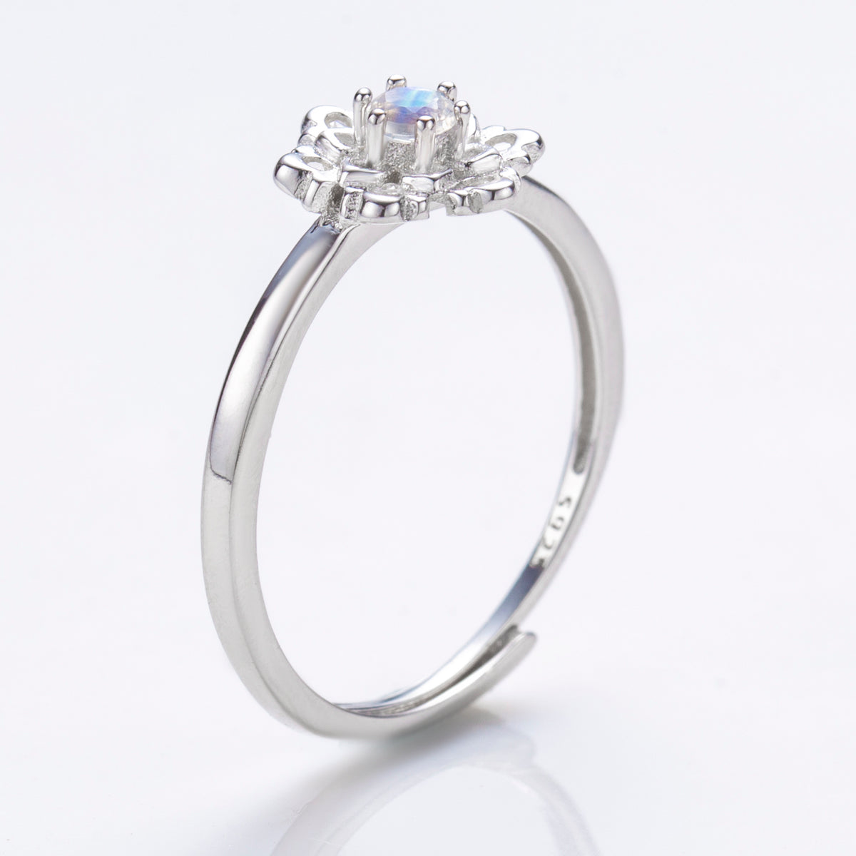 This is a fashion sterling silver ring with natural gemstone of Moonstone, adjustable size, round shape in size 3*3 mm Moonstone gemstone. Natural gem ring, silver rings wholesale.