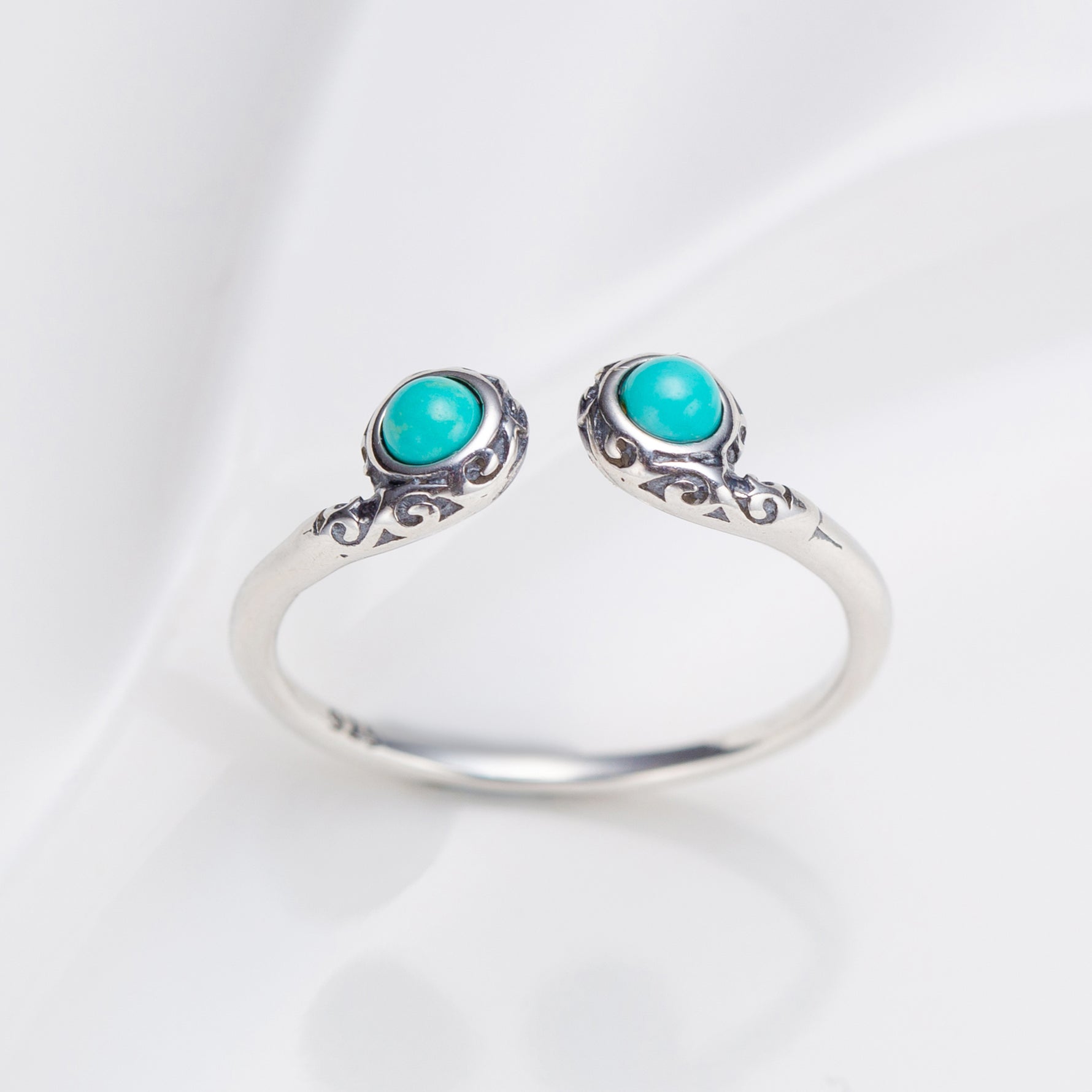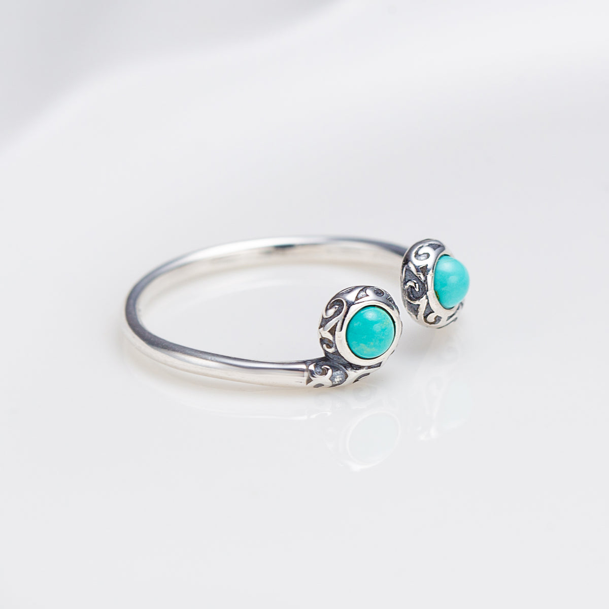 This is a fashion sterling silver ring with natural gemstone of Turquoise, adjustable size, cabochon round shape in size 3*3 mm Turquoise gemstone. Natural gem ring, silver rings wholesale.
