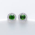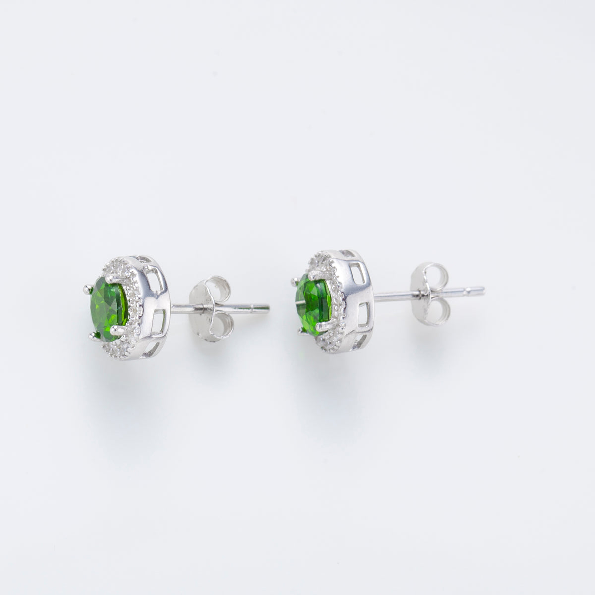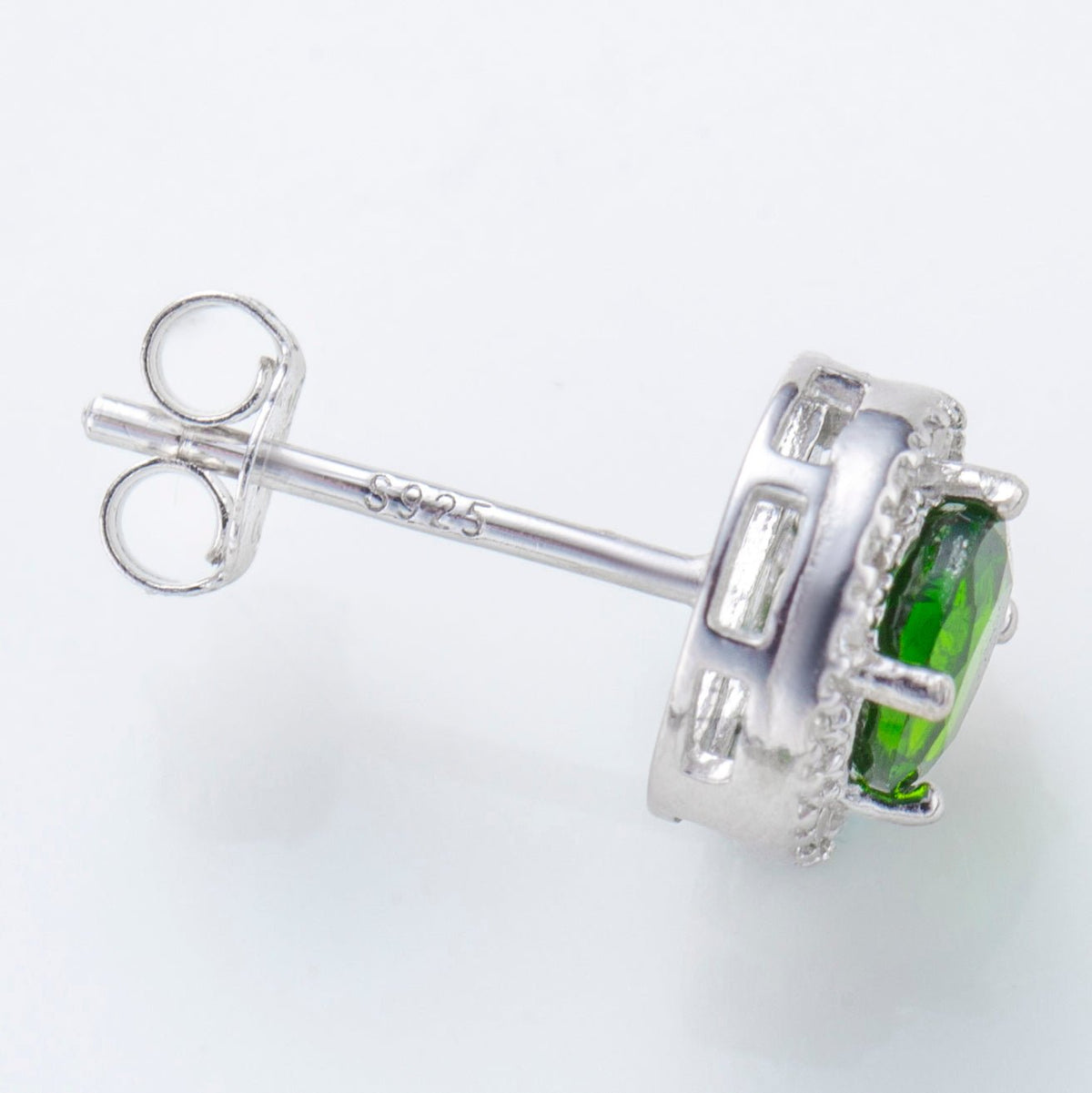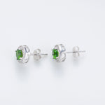 Natural Chrome Diopside Sterling Silver Halo Stud Earrings