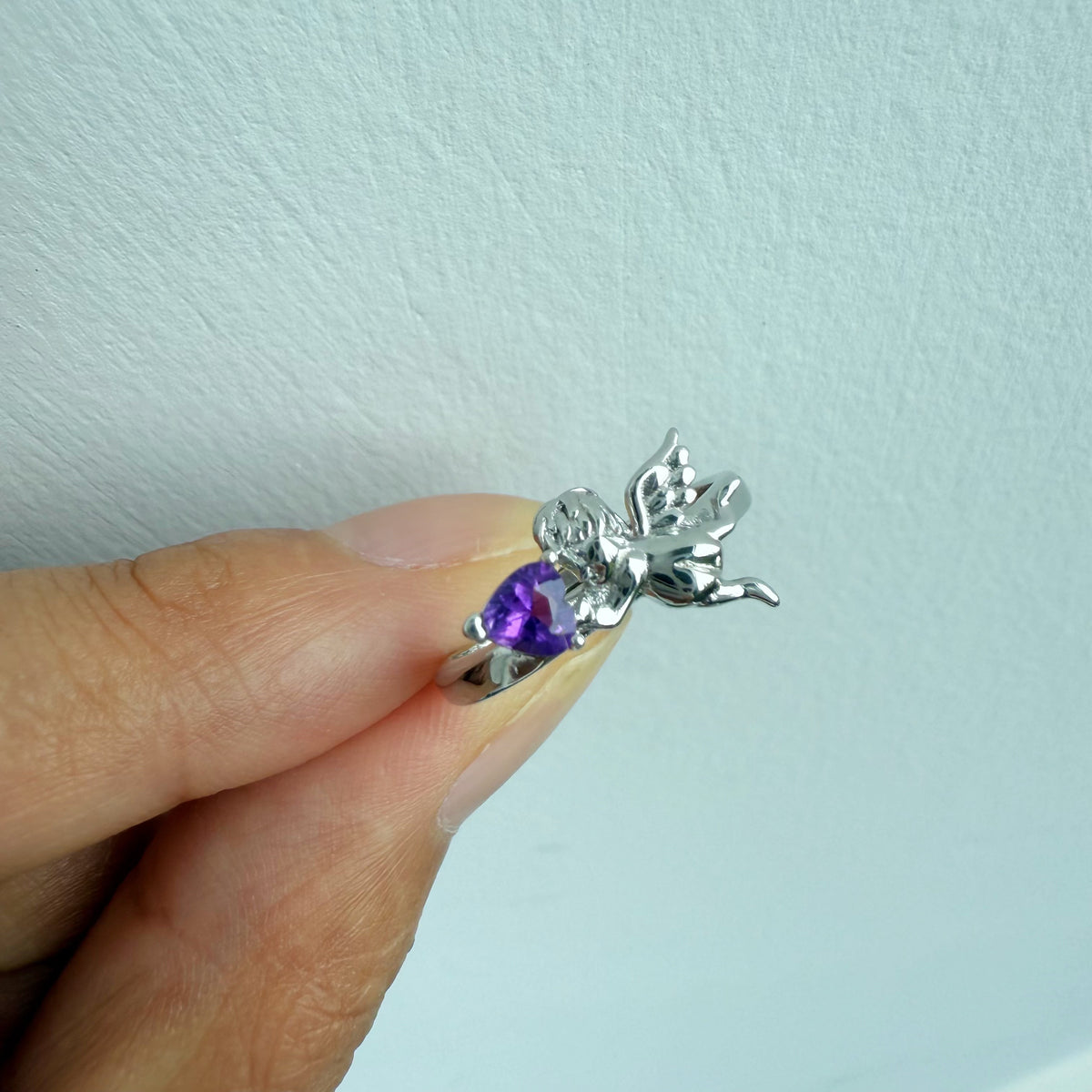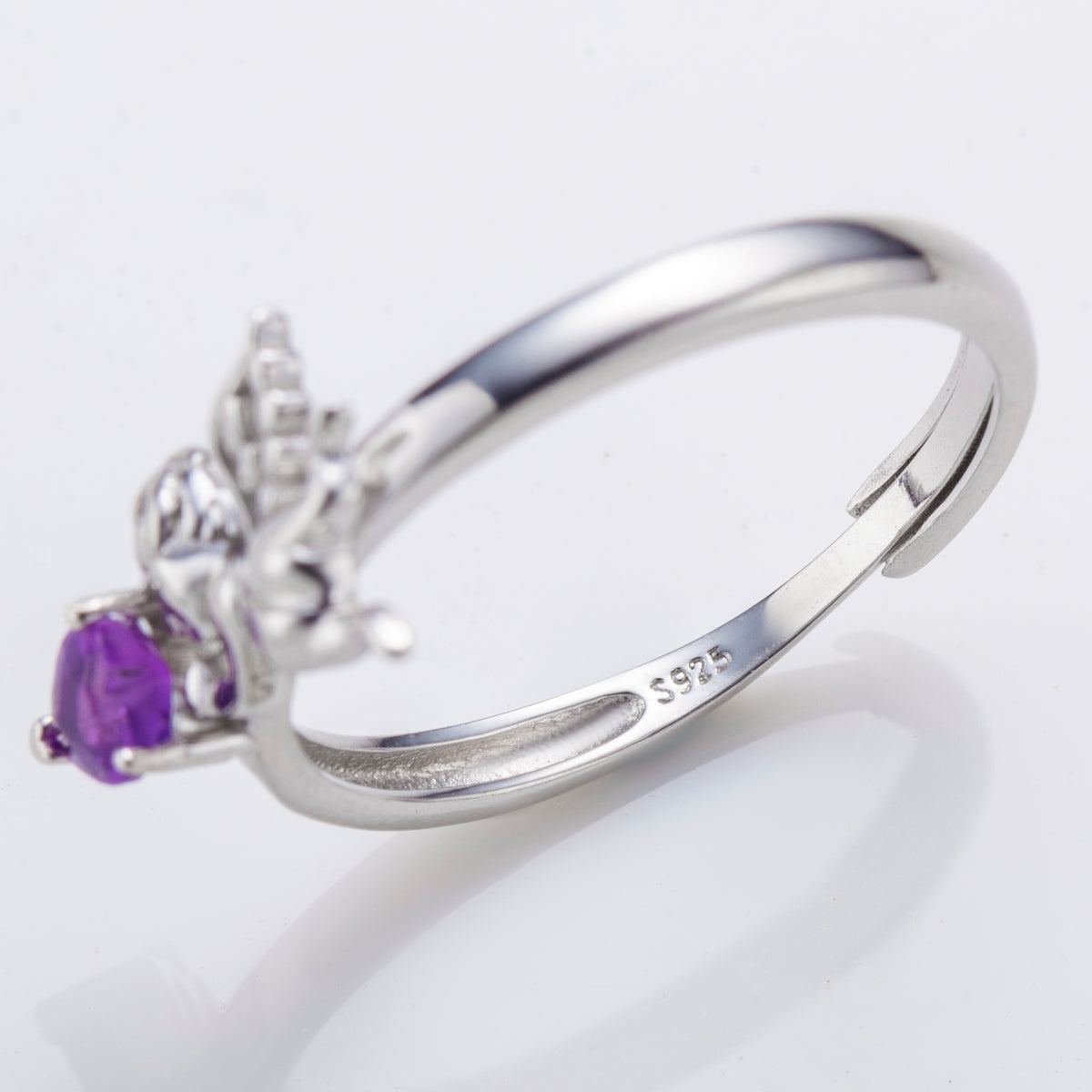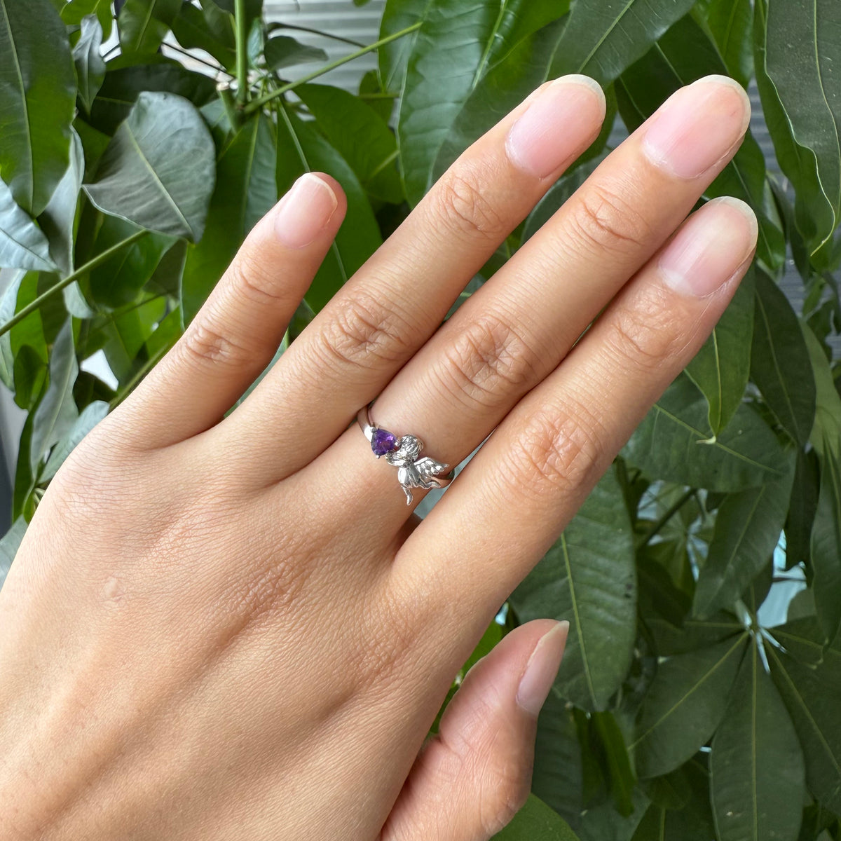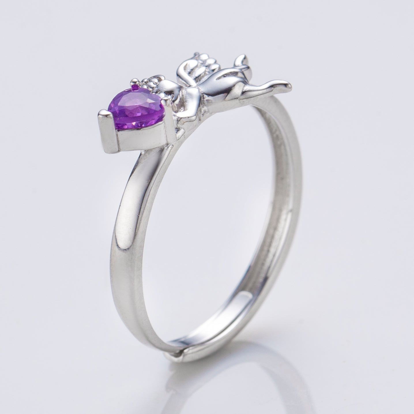 This is a fashion sterling silver ring with natural gemstone of Amethyst, adjustable size, Heart shape in size 4*4 mm Amethyst gemstone. Natural gem ring, silver rings wholesale.
