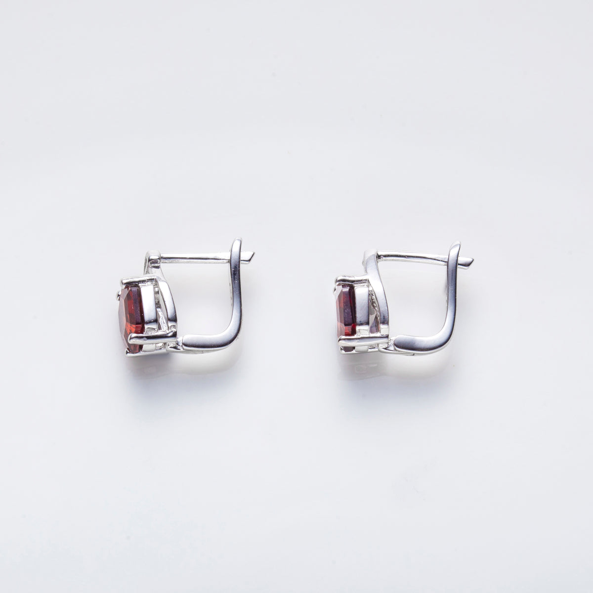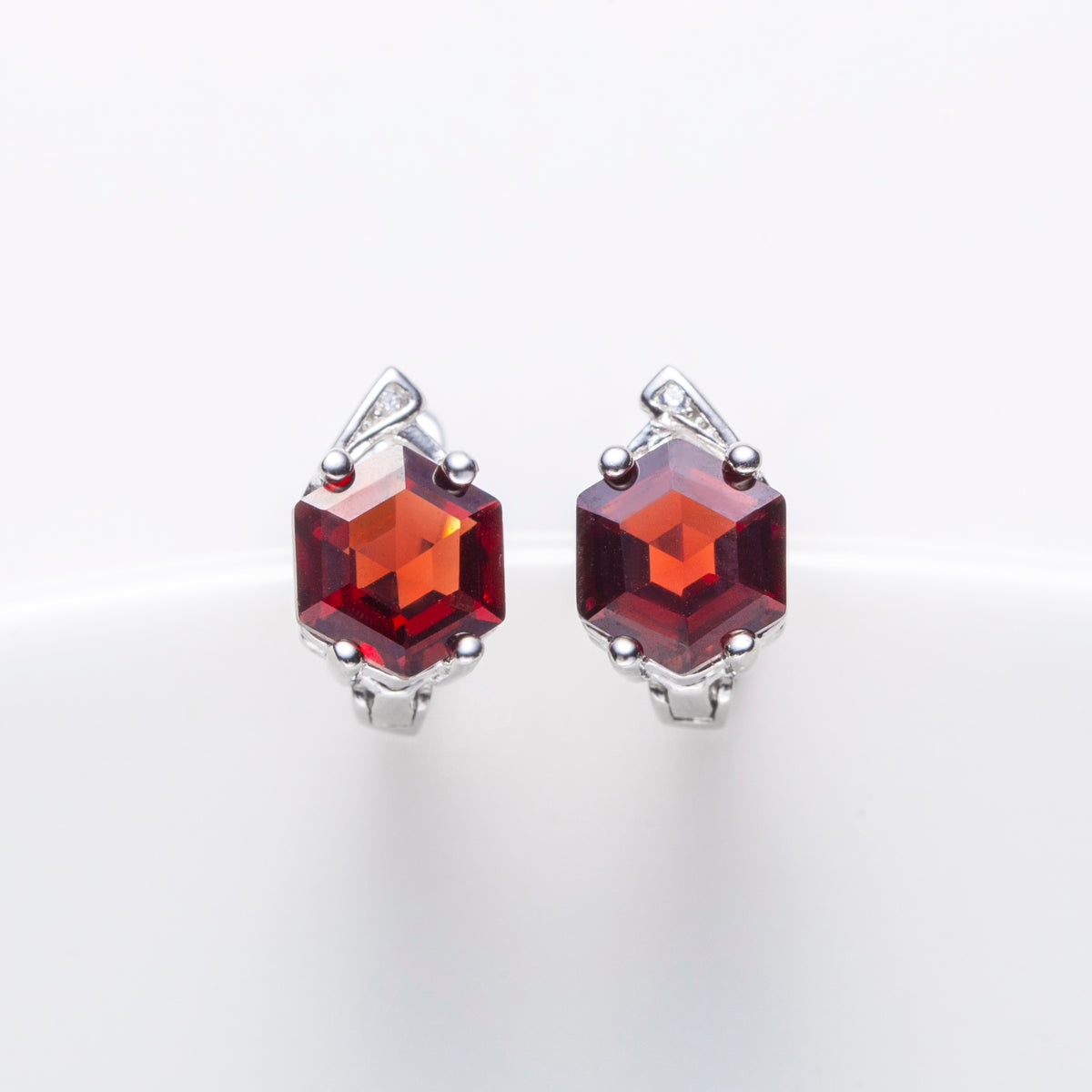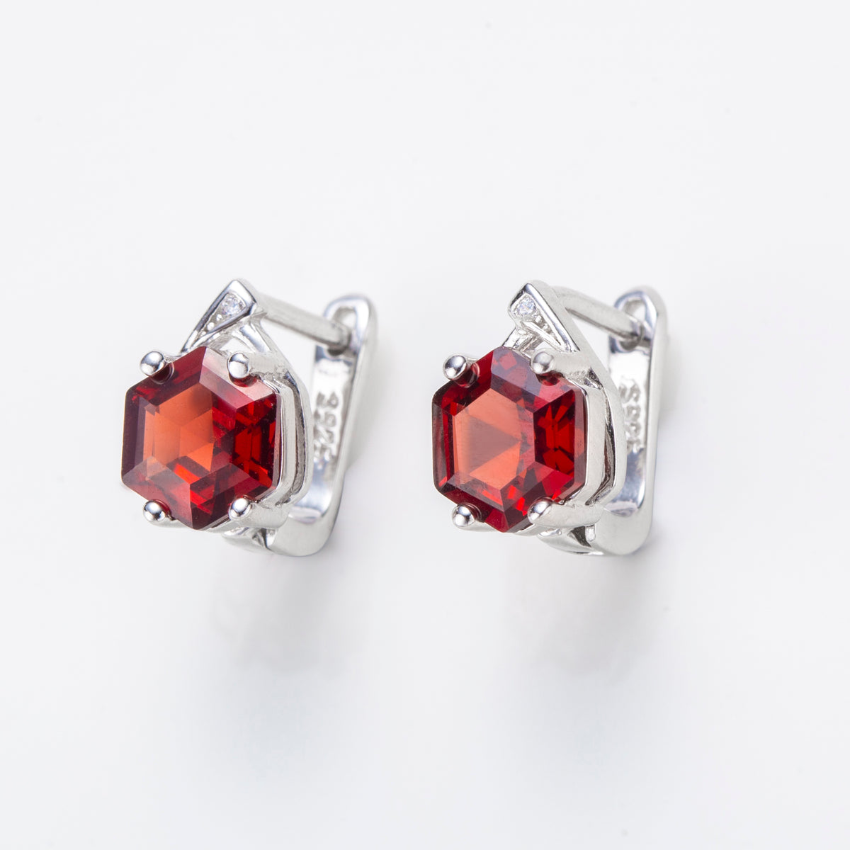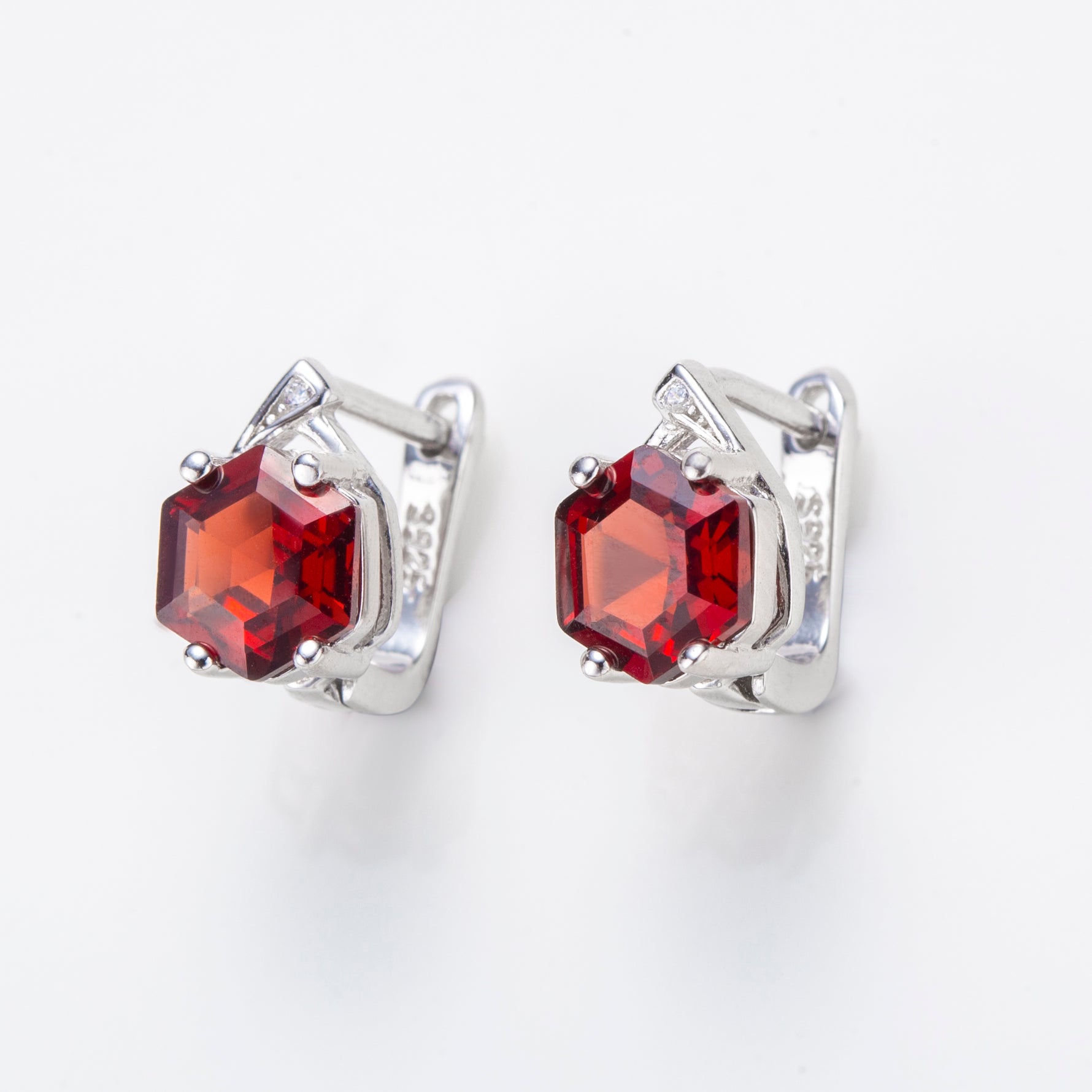 Fashion sterling silver earrings with natural gemstone of Garnet, hexagon shape in size 6*6 mm. Natural gem earrings, silver earrings wholesale.