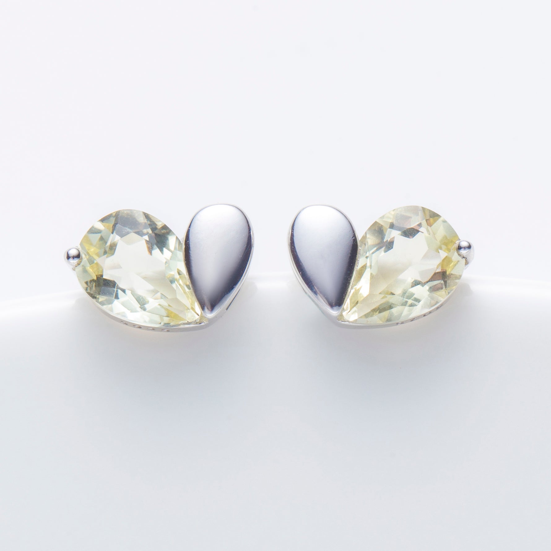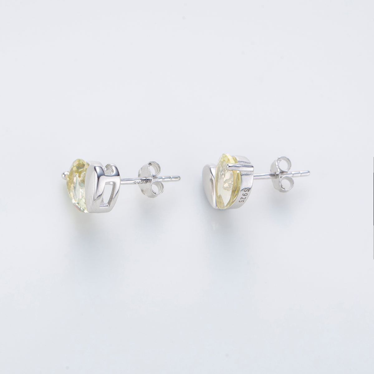 Natural Lemon Quartz Sterling Silver Heart Stud Earrings