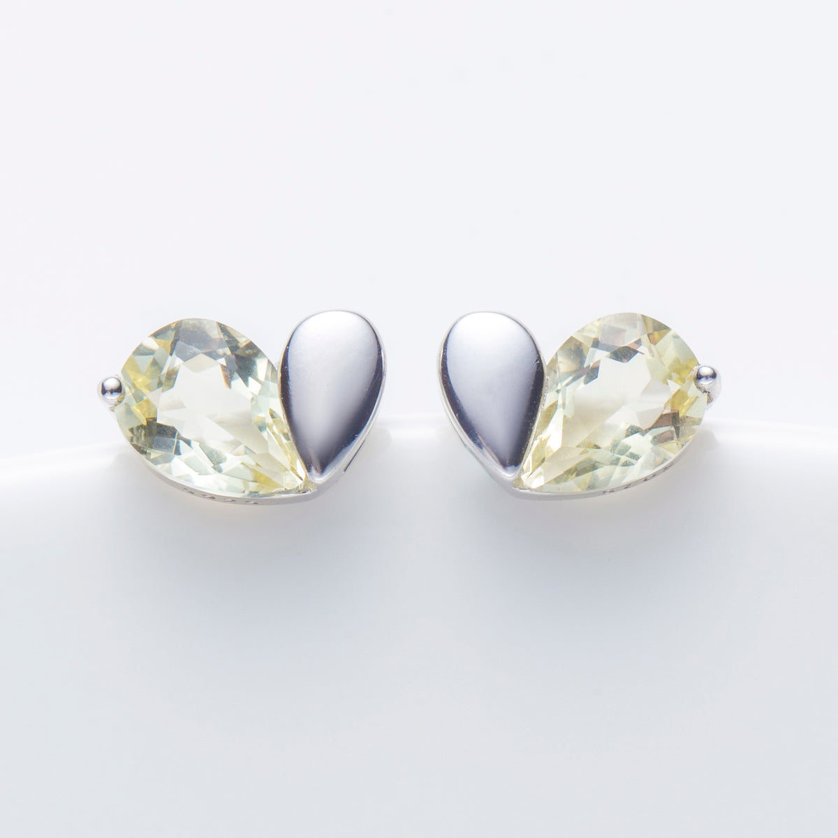 Fashion sterling silver earrings with natural gemstone of Lemon Quartz, pear shape in size 6*8 mm. Natural gem earrings, silver earrings wholesale.