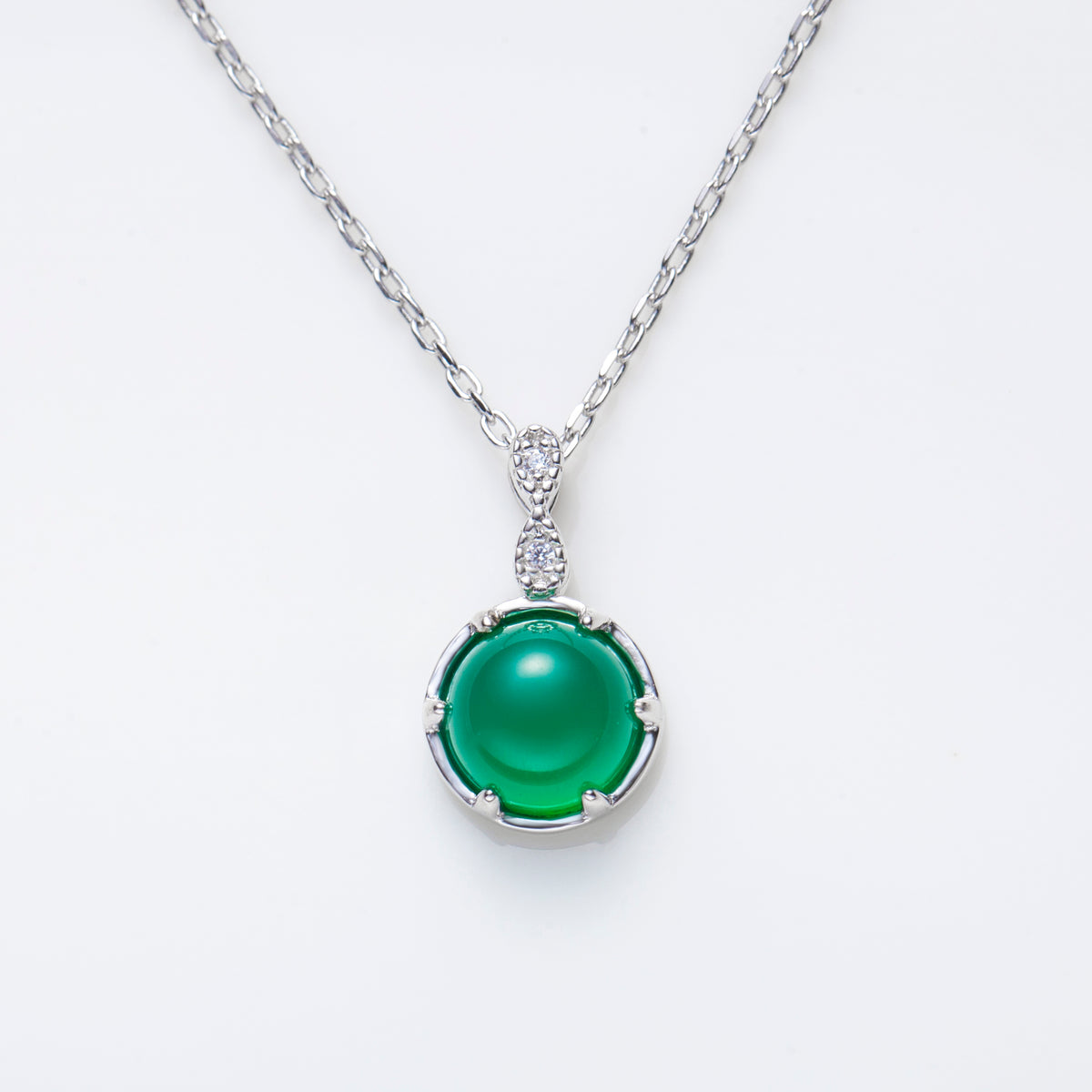 Elevate your collection with our green chalcedony silver necklace. Crafted with premium sterling silver and natural green chalcedony, this cabochon pendant offers a smooth, lustrous finish. Perfect for nature-inspired and minimalist jewelry lines. Customizable branding, bulk pricing, and reliable OEM/ODM support available.