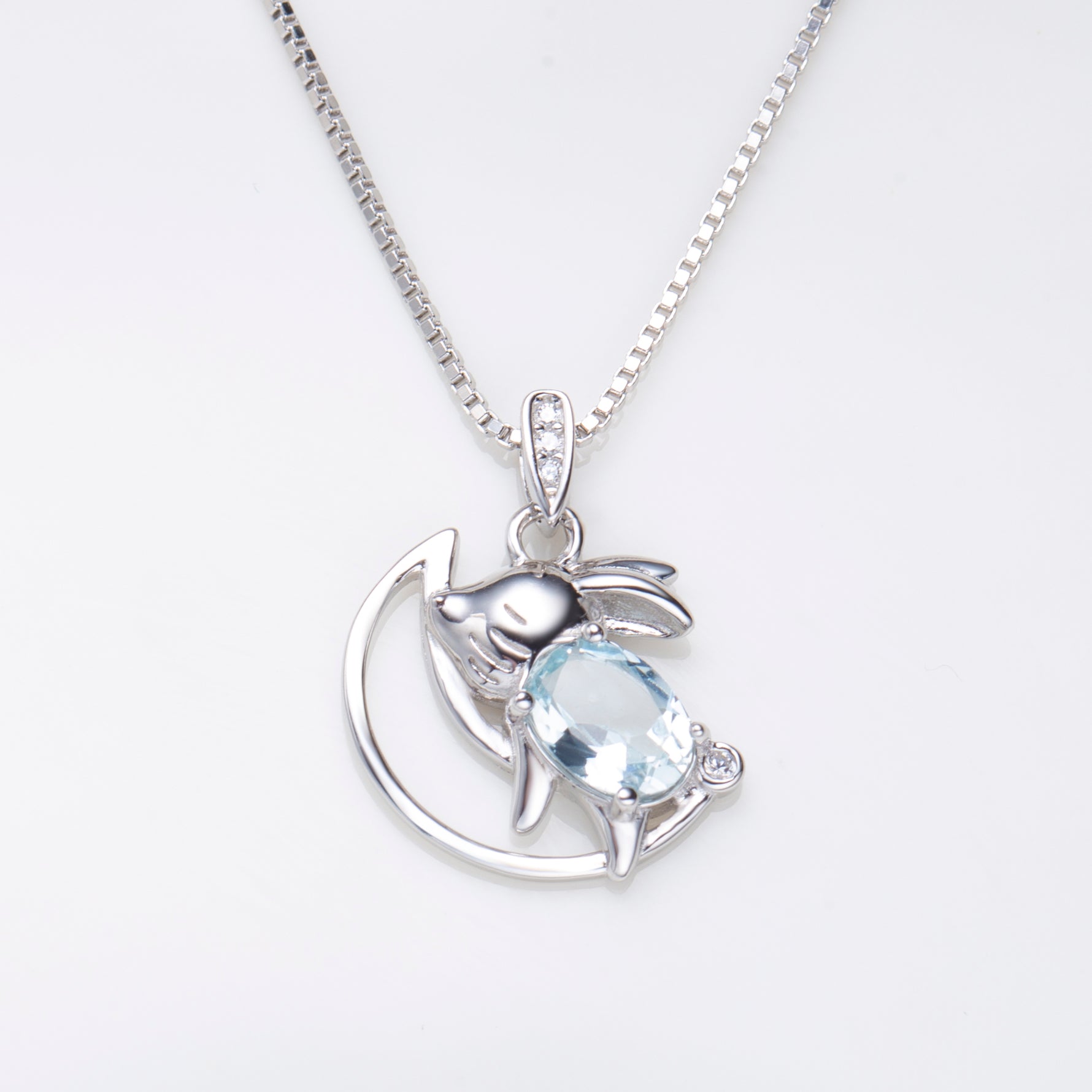 Fashion sterling silver necklace with natural gemstone of Aquamarine, Oval shaped 5*7mm size Aquamarine gemstone. Natural gem necklace, silver necklace wholesale.