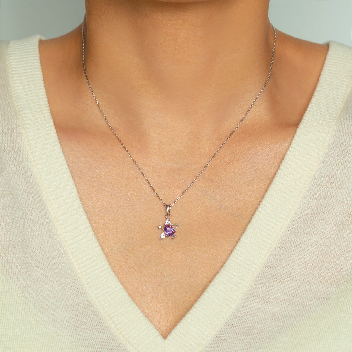 Discover the enchanting silver star amethyst necklace. This celestial-inspired jewelry features a genuine purple amethyst gemstone set in a detailed sterling silver star pendant. A perfect gift for women, this mystical birthstone necklace combines elegance with spiritual meaning for a truly magical and stylish accessory.