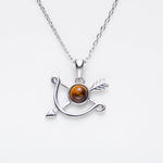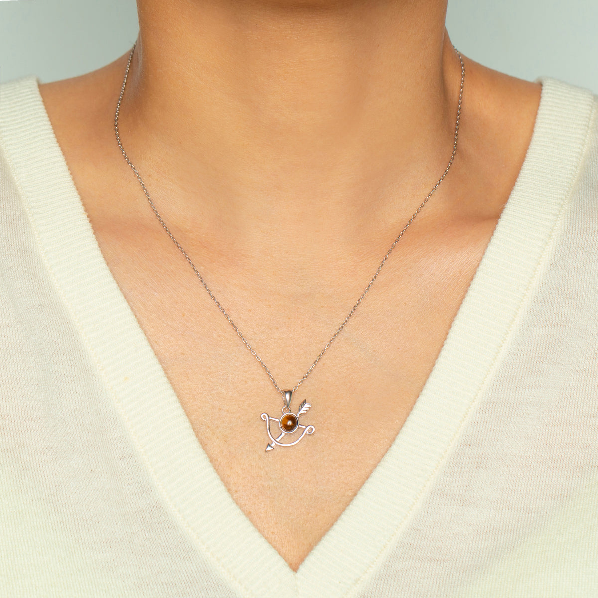 Crafted in sterling silver, this unique tiger's eye bow and arrow necklace symbolizes focus and determination. The golden-brown stone is elegantly set as the arrow's center. A meaningful gift for archers and anyone seeking a talisman for strength, protection, and hitting their life's targets.