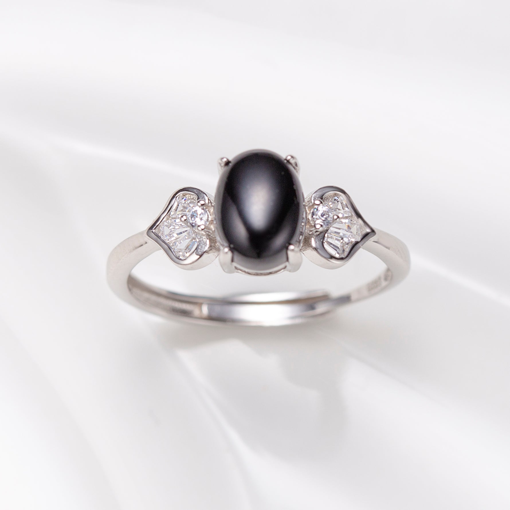 This is a fashion sterling silver ring with natural gemstone of Black Onyx, adjustable size, Cabochon Oval shape in size 6*8 mm Black Onyx gemstone. Natural gem ring, silver rings wholesale.