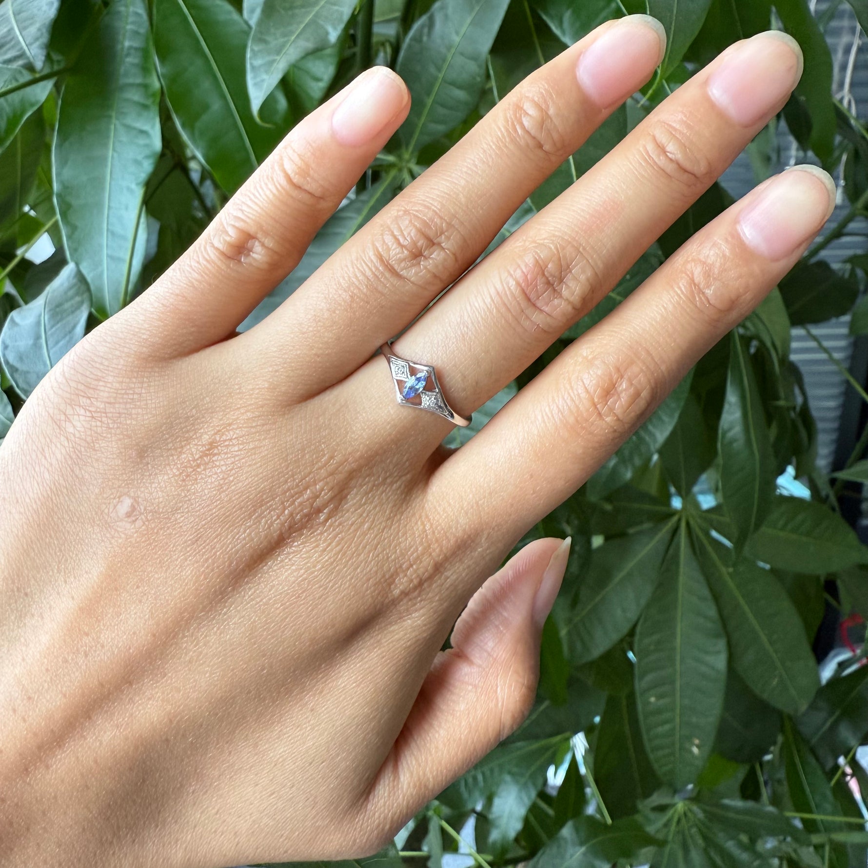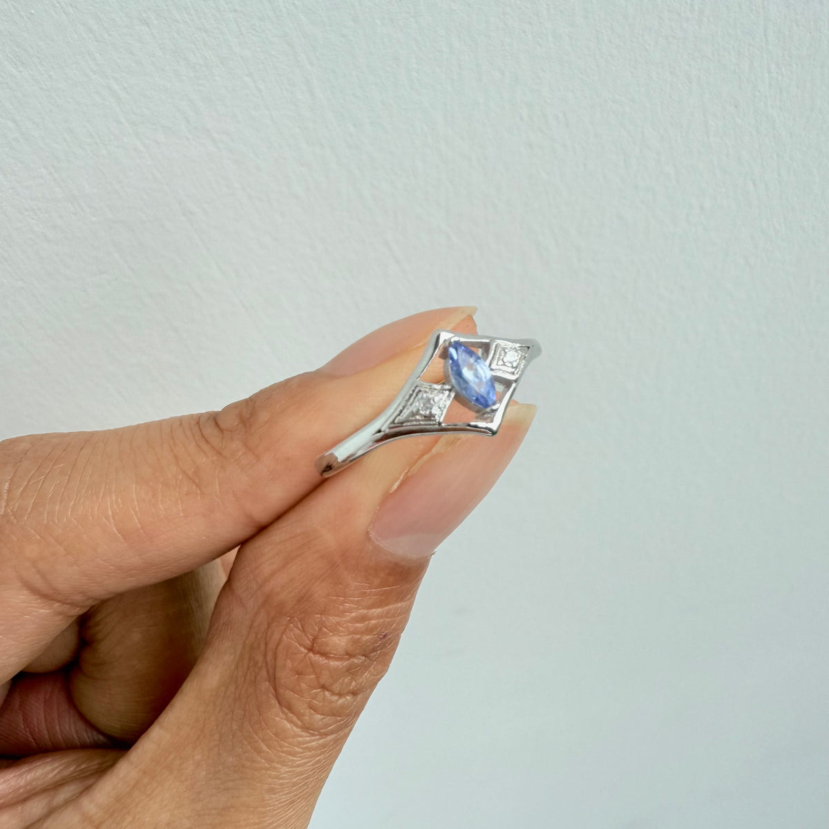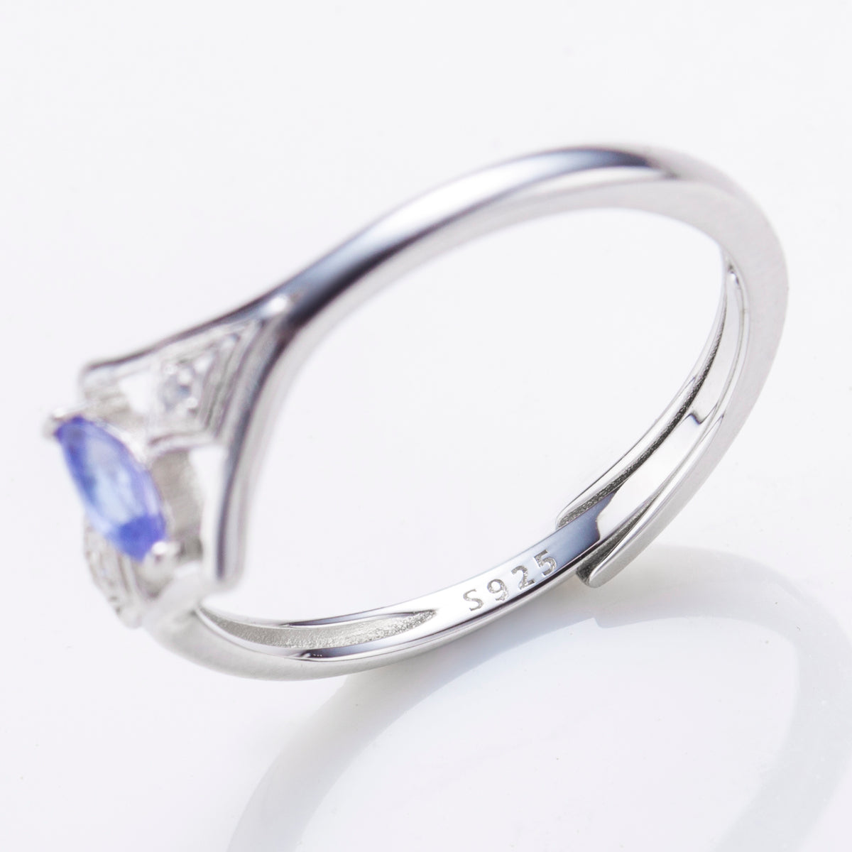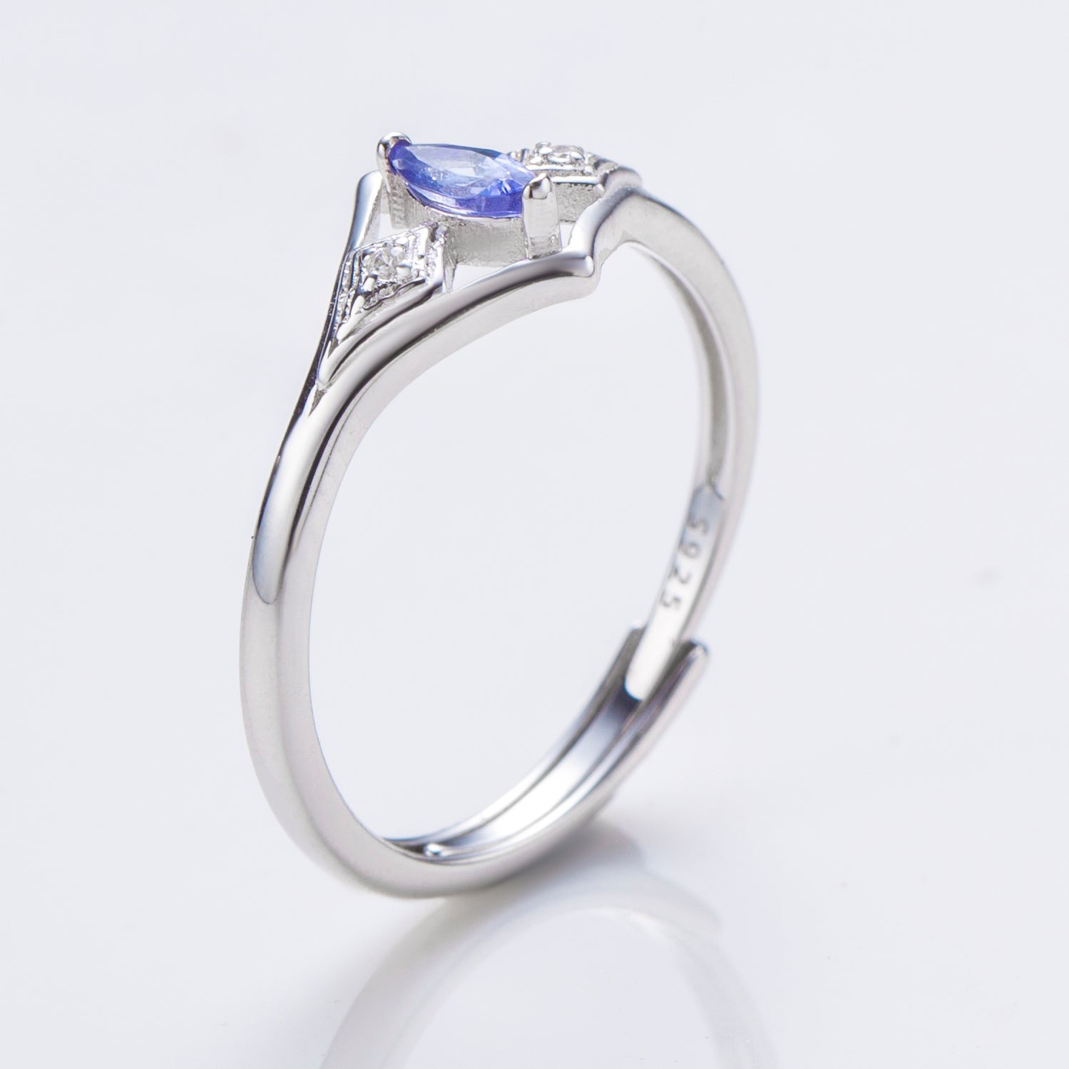 This is a fashion sterling silver ring with natural gemstone of Tanzanite, adjustable size, Marquise shape in size 2.5*5 mm Tanzanite gemstone. Natural gem ring, silver rings wholesale.