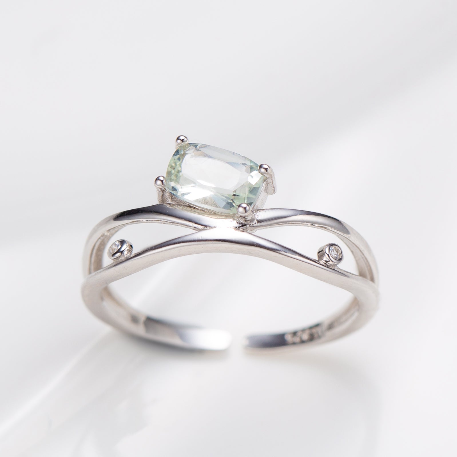 This is a fashion sterling silver ring with natural gemstone of Green Quartz, adjustable size, Octagon shape in size 4*6 mm Smoky Quartz gemstone. Natural gem ring, silver rings wholesale.