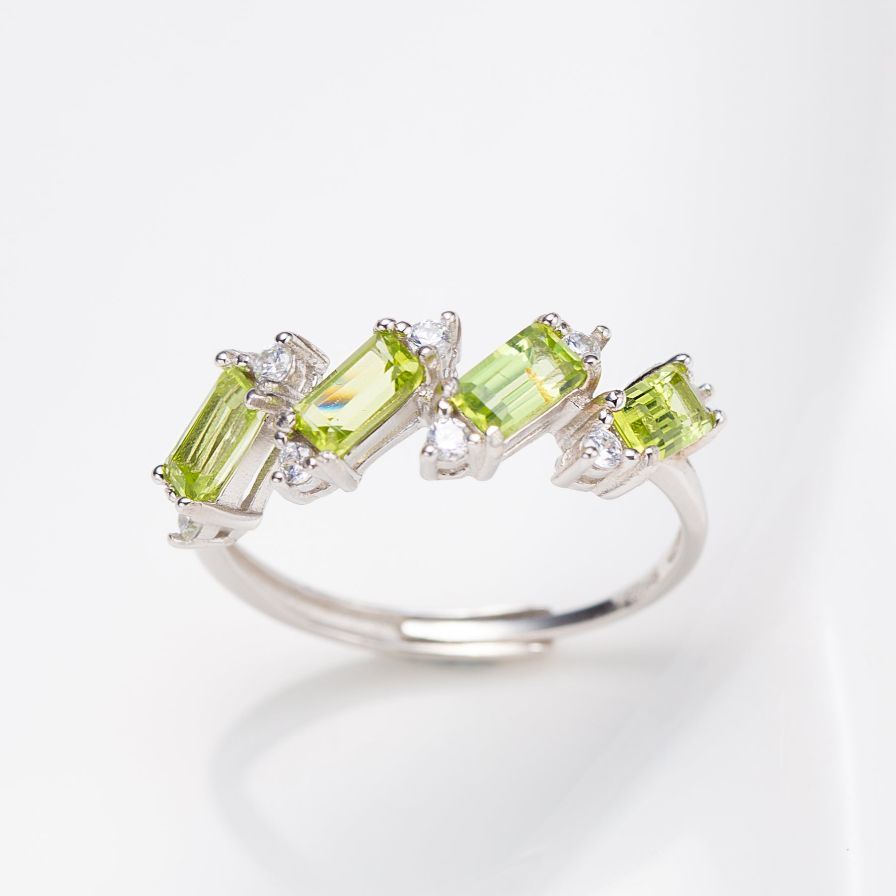 This is a fashion sterling silver ring with natural gemstone of Peridot, adjustable size, Octagon shape in size 3*5 mm Peridot gemstone. Natural gem ring, silver rings wholesale.