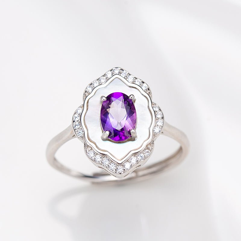 Natural Oval Cut Amethyst Shell Ring