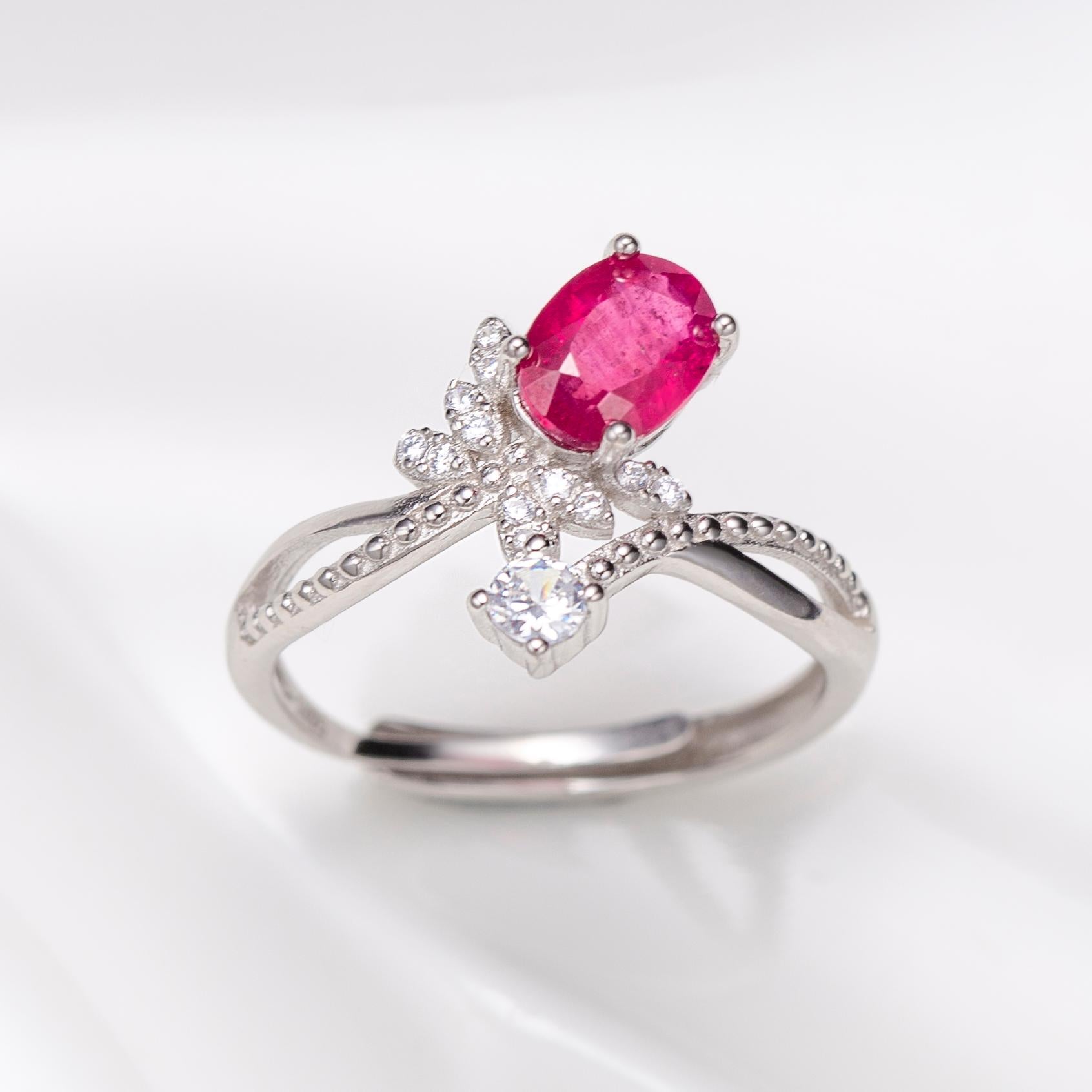 This is a fashion sterling silver ring with natural gemstone of Ruby, adjustable size, Oval shape in size 5*7 mm Ruby gemstone. Natural gem ring, silver rings wholesale.