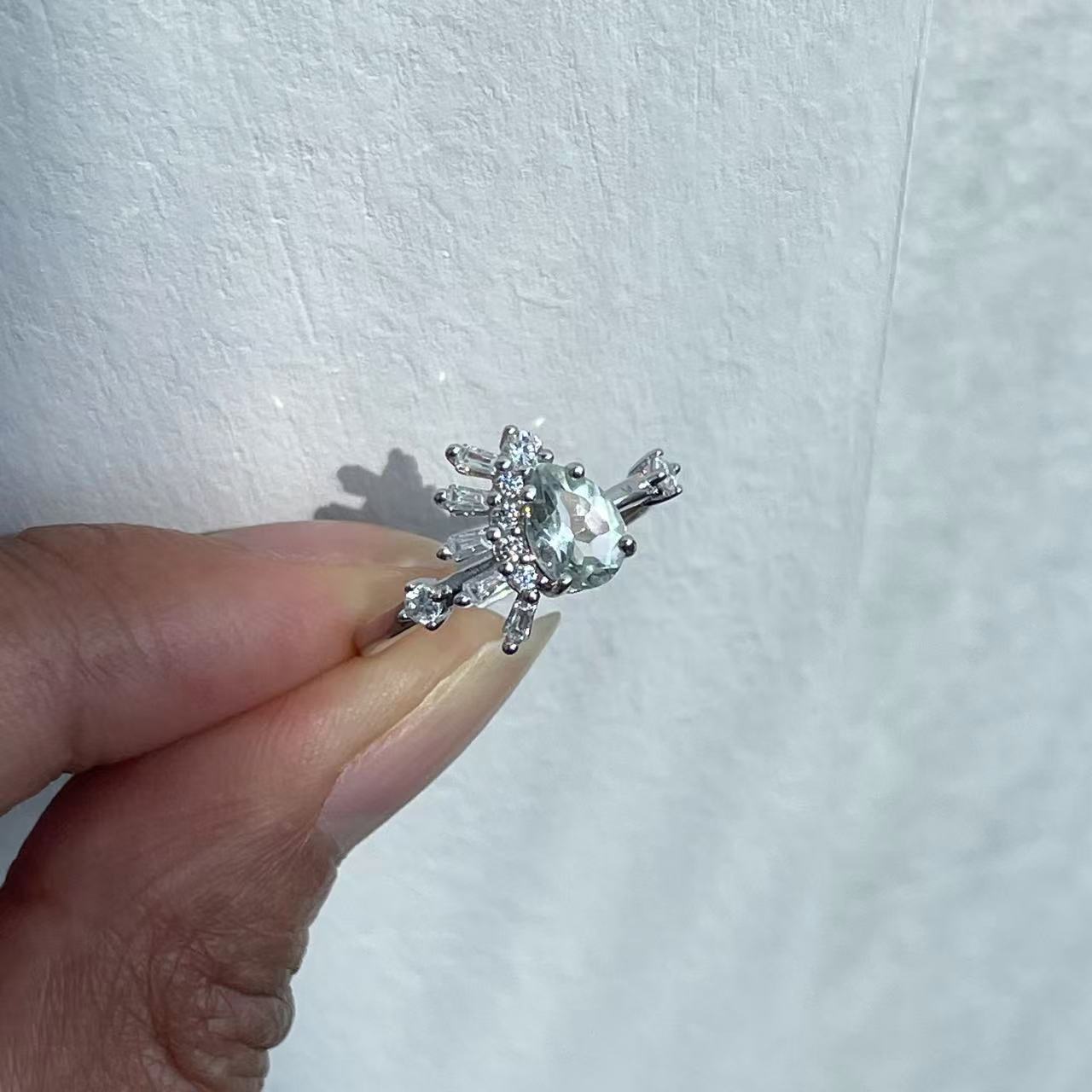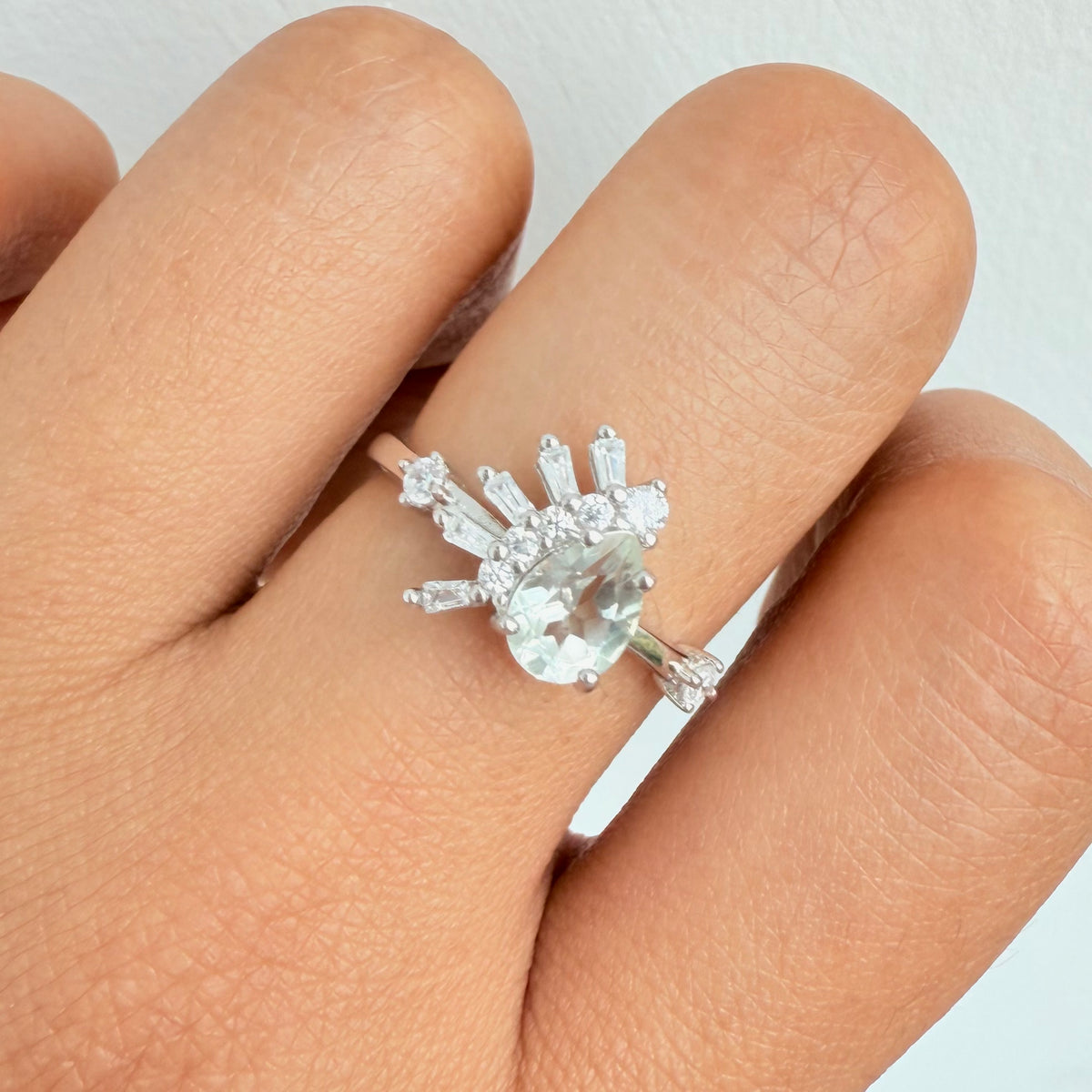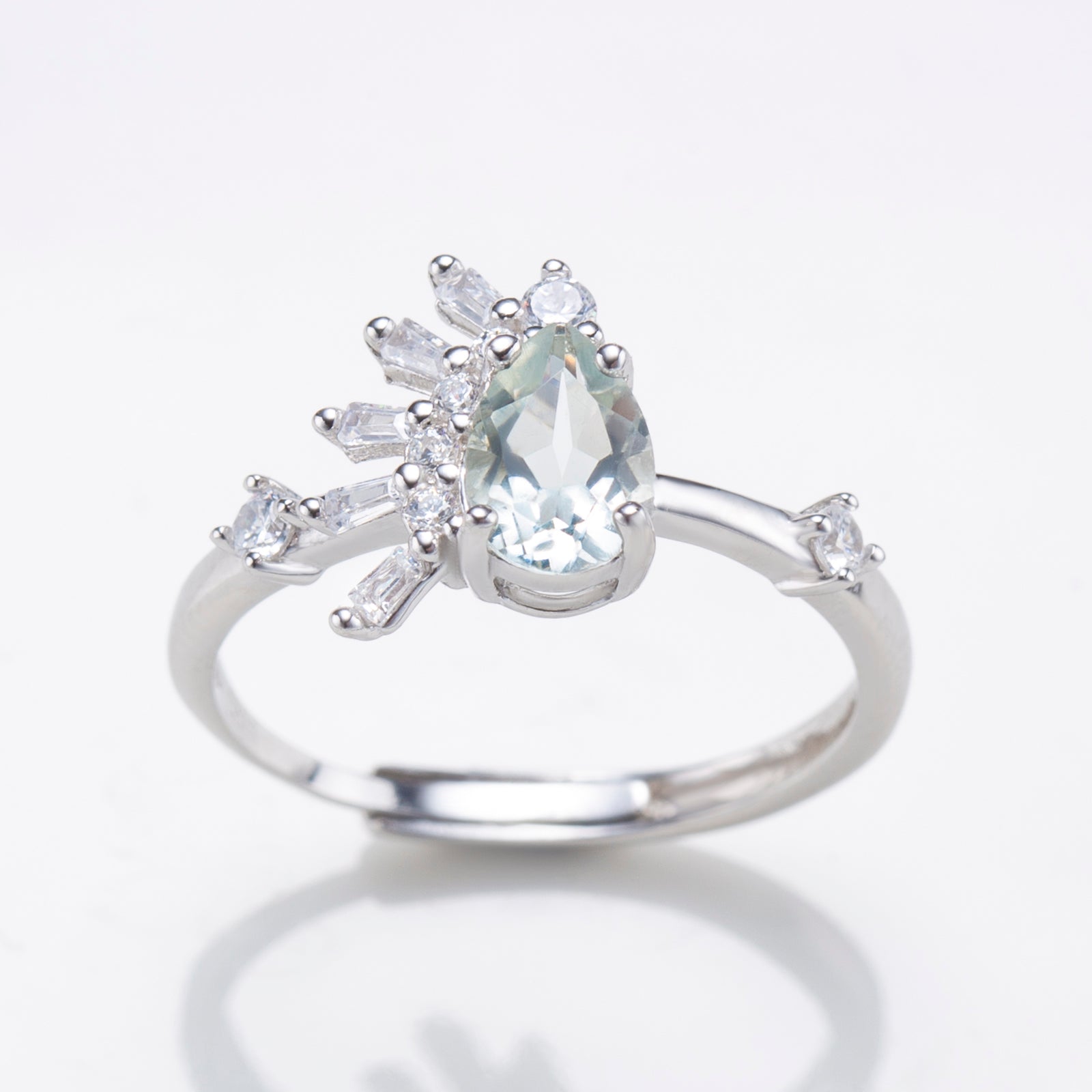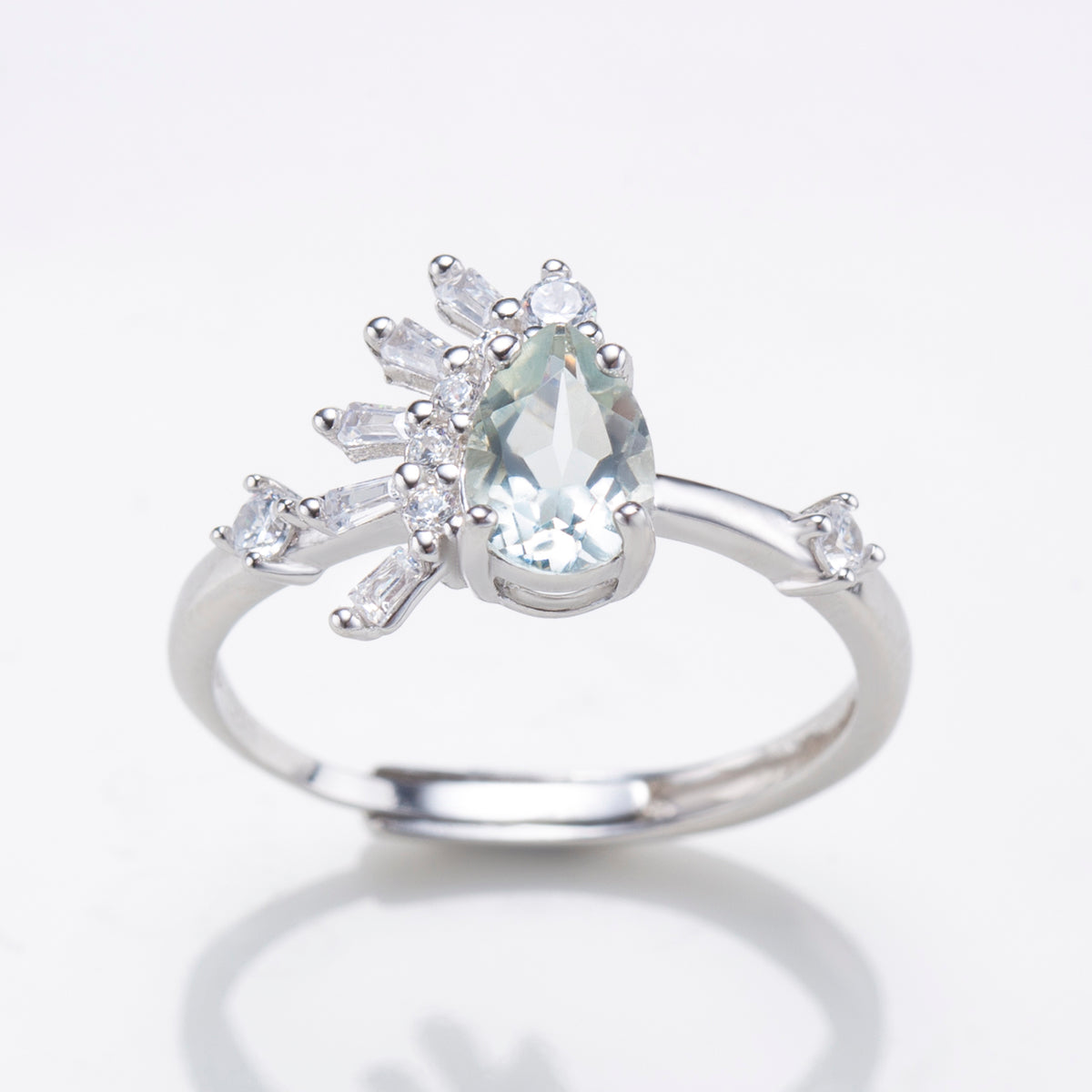 This is a fashion sterling silver ring with natural gemstone of Green Quartz, adjustable size, Pear shape in size 5*7mm Green Quartz gemstone. Natural gem ring, silver rings wholesale.