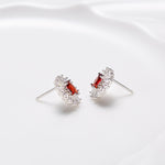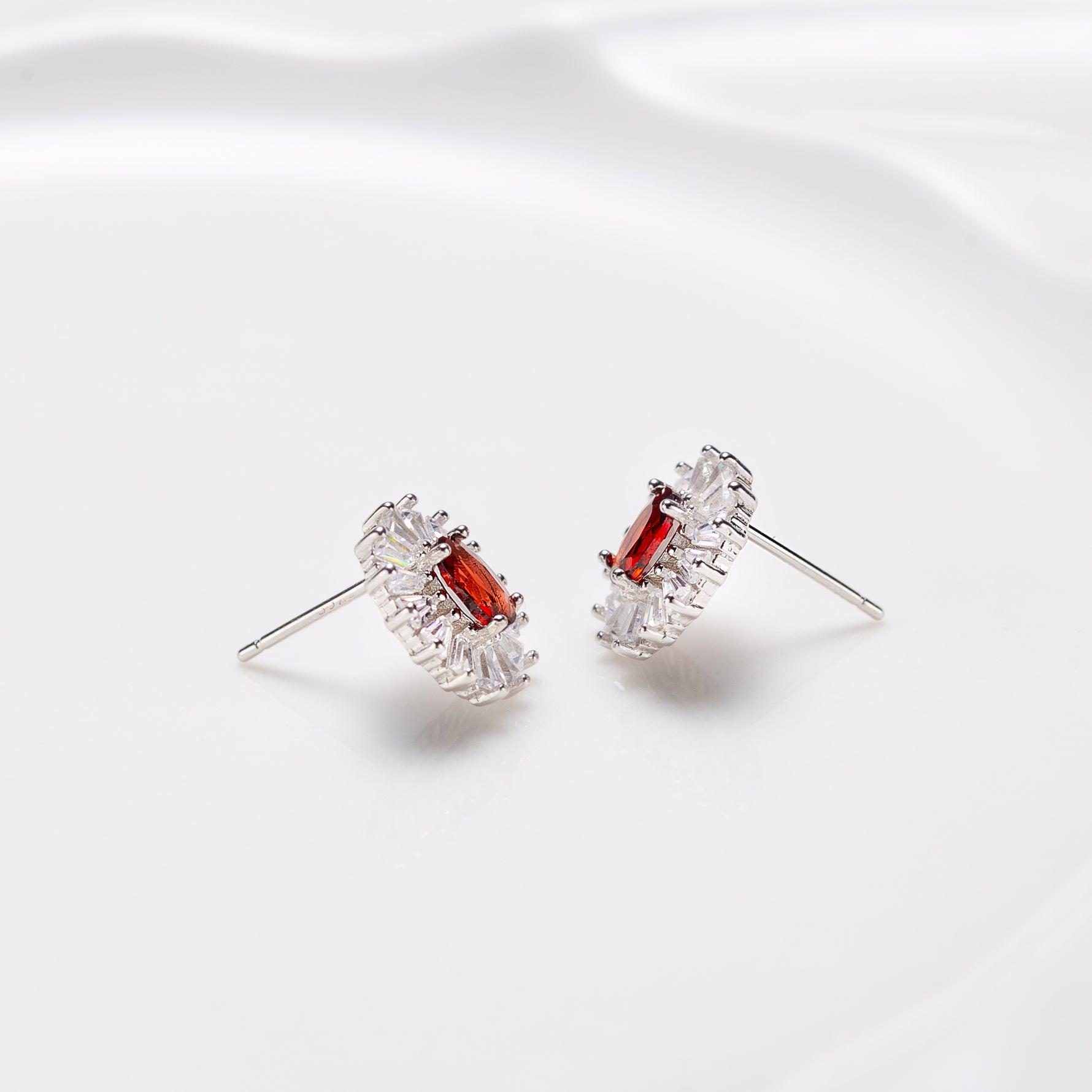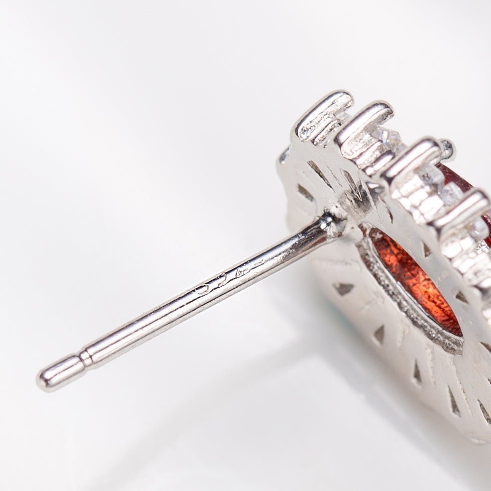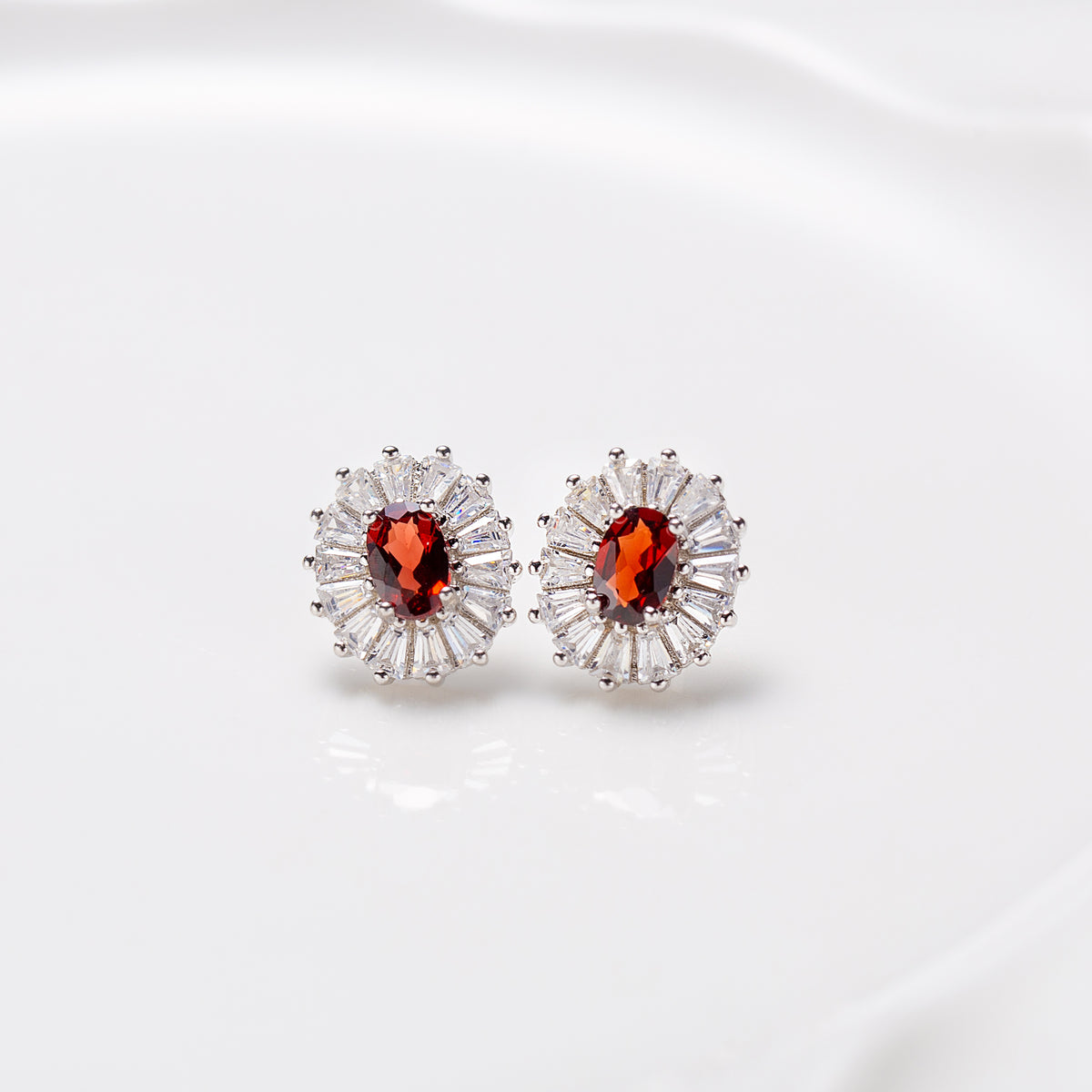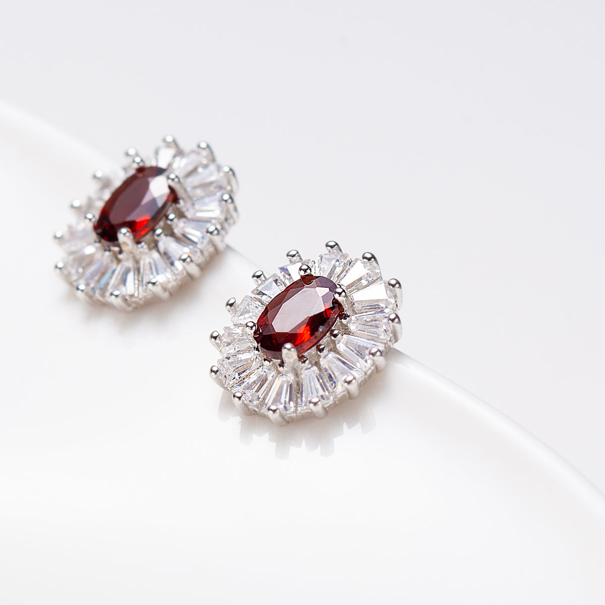 Fashion sterling silver earrings with natural gemstone of Garnet, oval shape in size 4*6 mm. Natural gem earrings, silver earrings wholesale.
