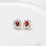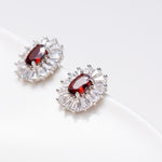 Natural Oval Shape Garnet Sterling Silver Stud Earrings