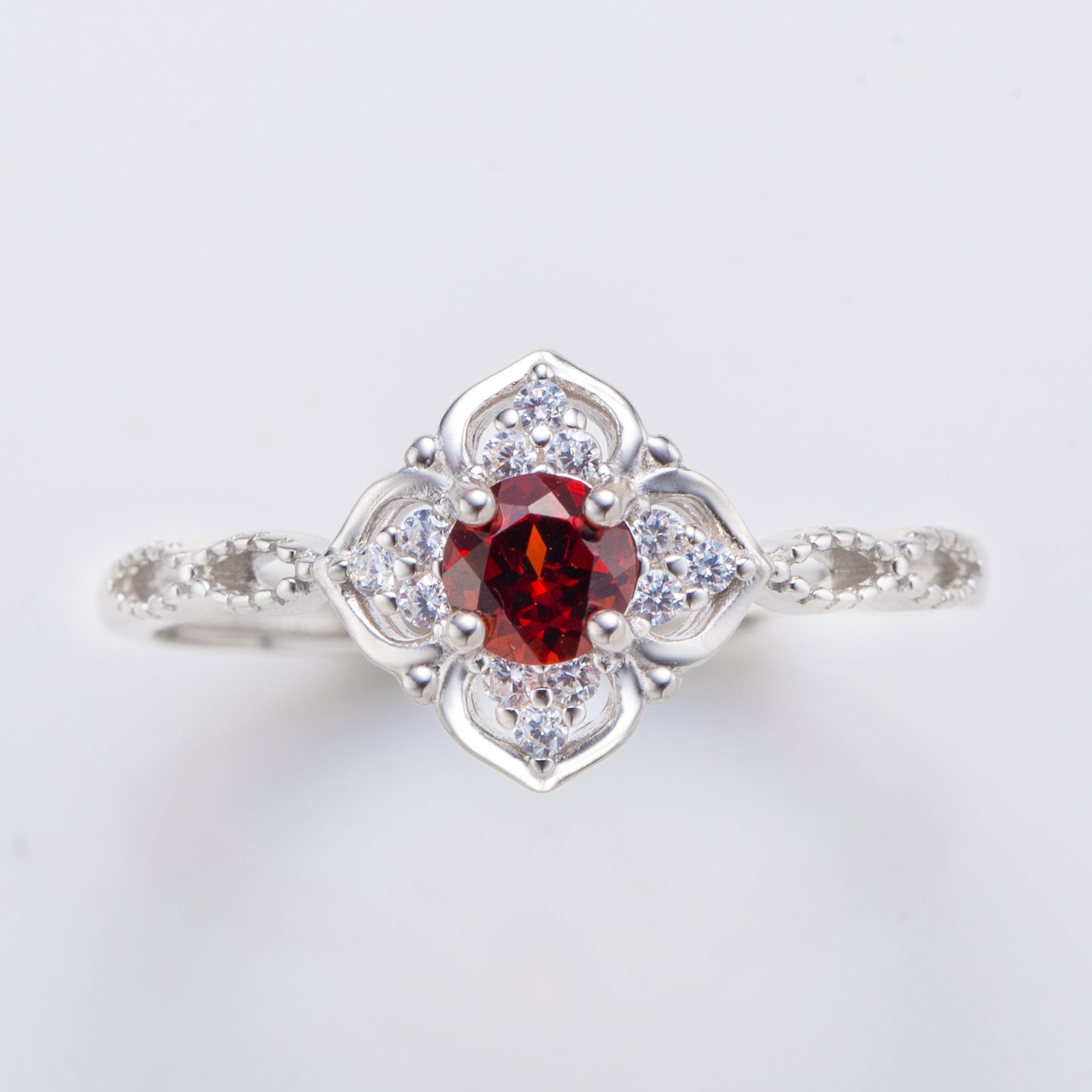This is a fashion sterling silver ring with natural gemstone of Garnet, adjustable size, round shape in size 4*4 mm Garnet gemstone. Natural gem ring, silver rings wholesale.