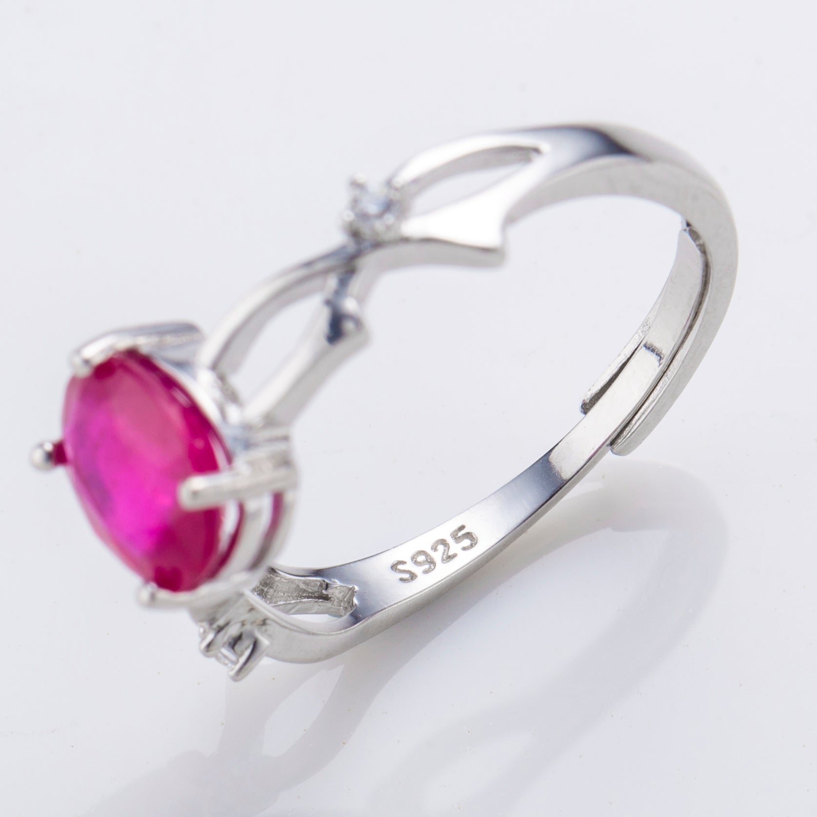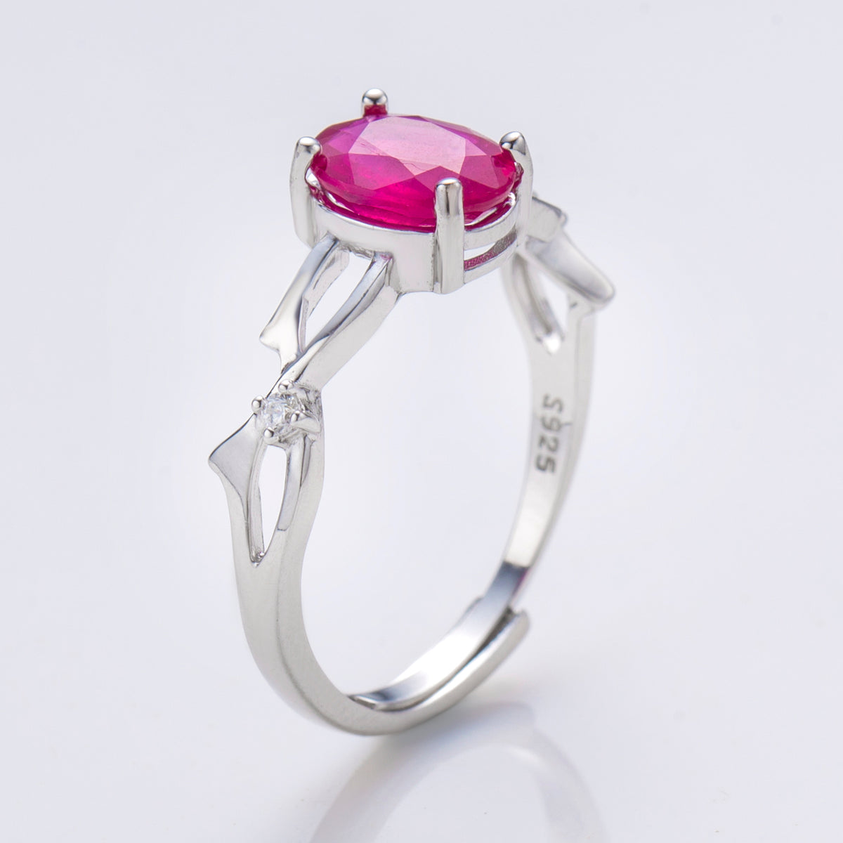 This is a fashion sterling silver ring with natural gemstone of Ruby, adjustable size, Oval shape in size 6*8 mm Ruby gemstone. Natural gem ring, silver rings wholesale.