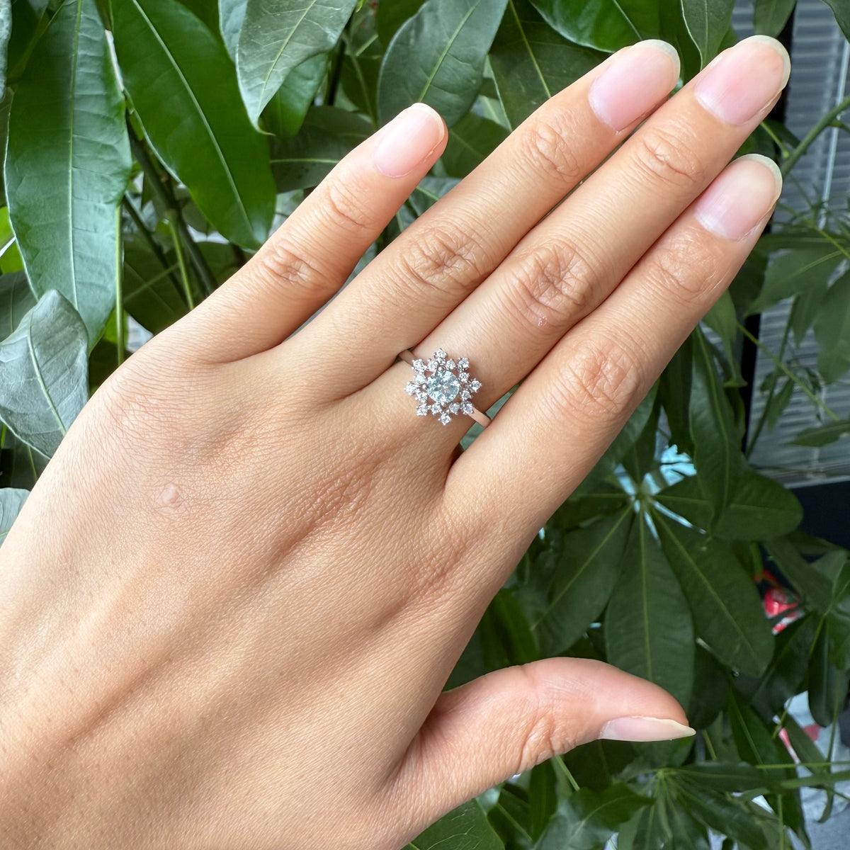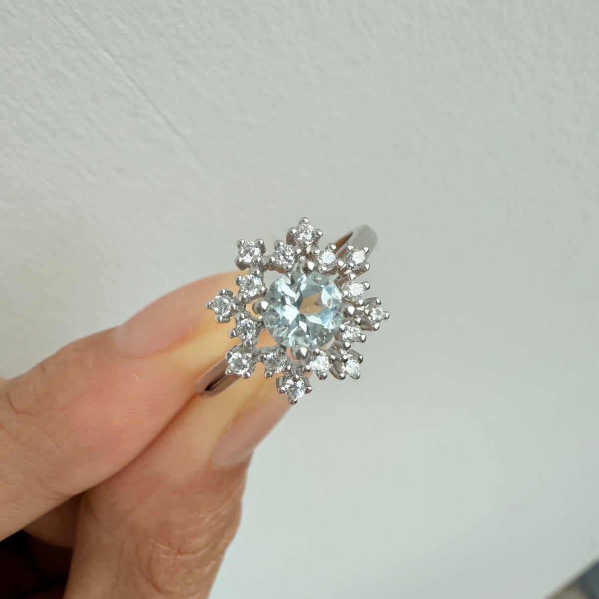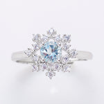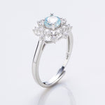 Natural Round Shape Aquamarine Sterling Silver Ring