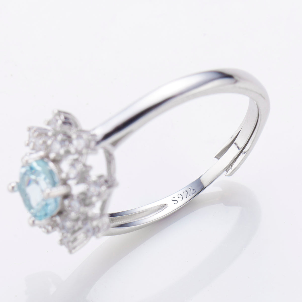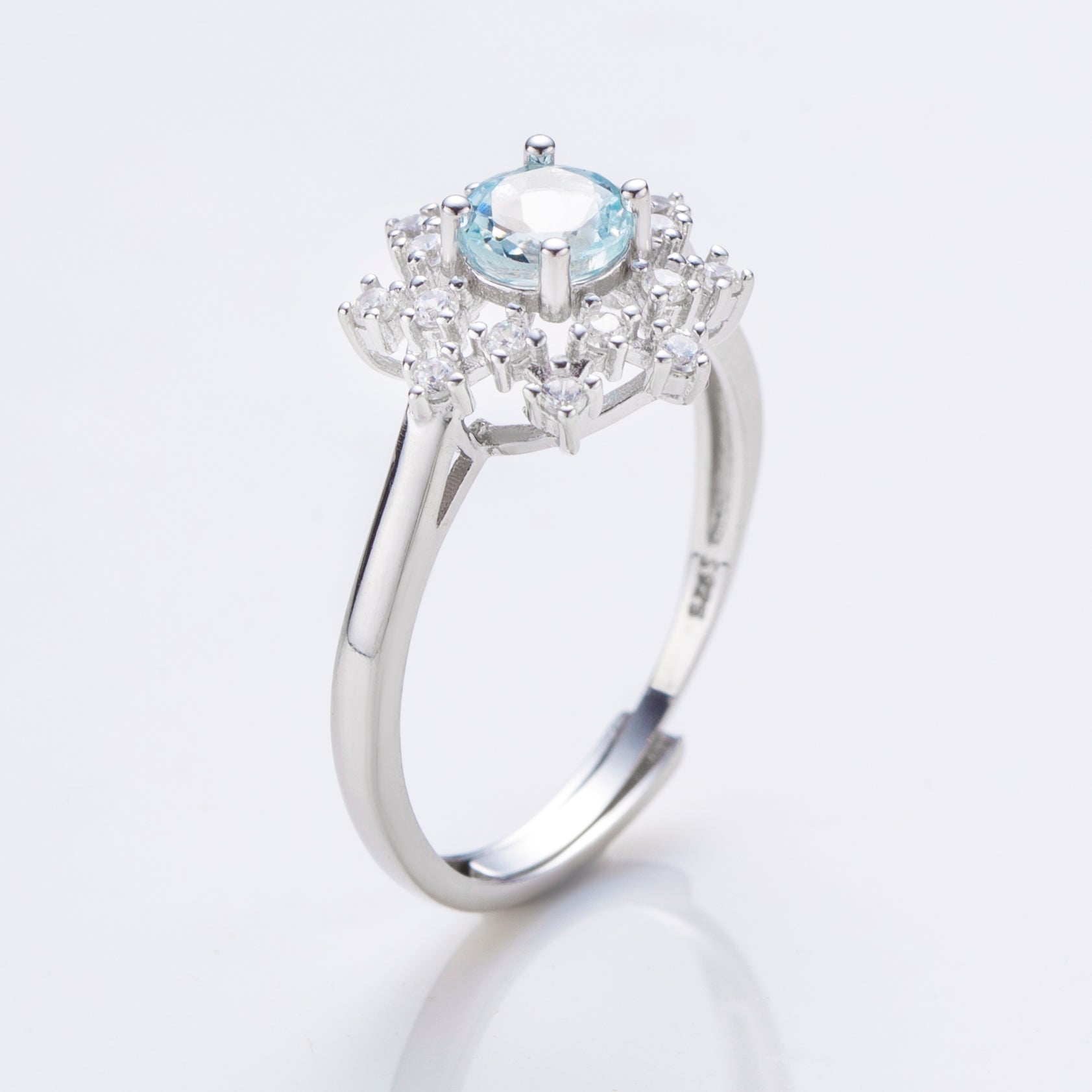 This is a fashion sterling silver ring with natural gemstone of Aquamarine, adjustable size, round shape in size 5*5 mm Aquamarine gemstone. Natural gem ring, silver rings wholesale.