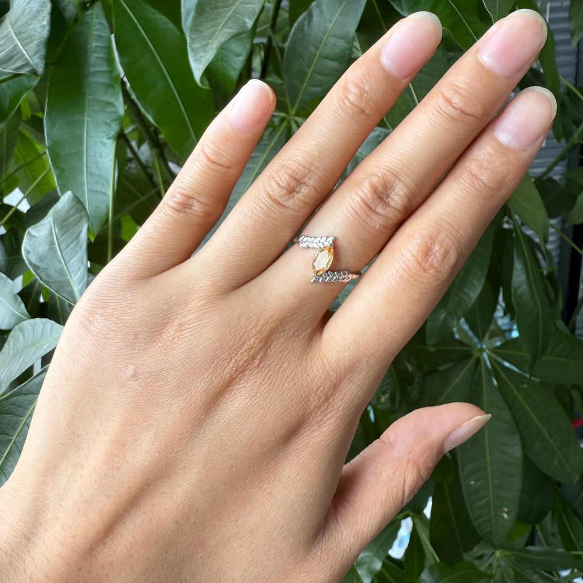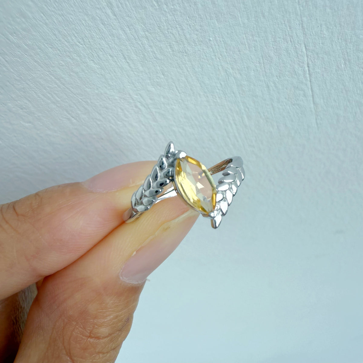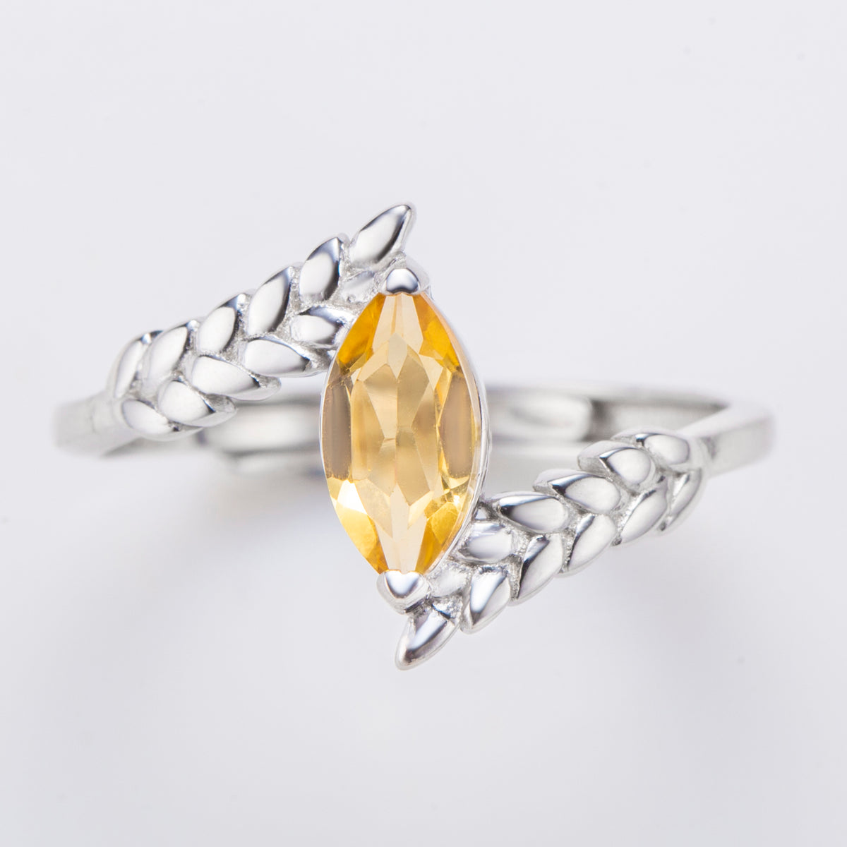 Natural Marquise Citrine Wheat Sterling Silver Ring