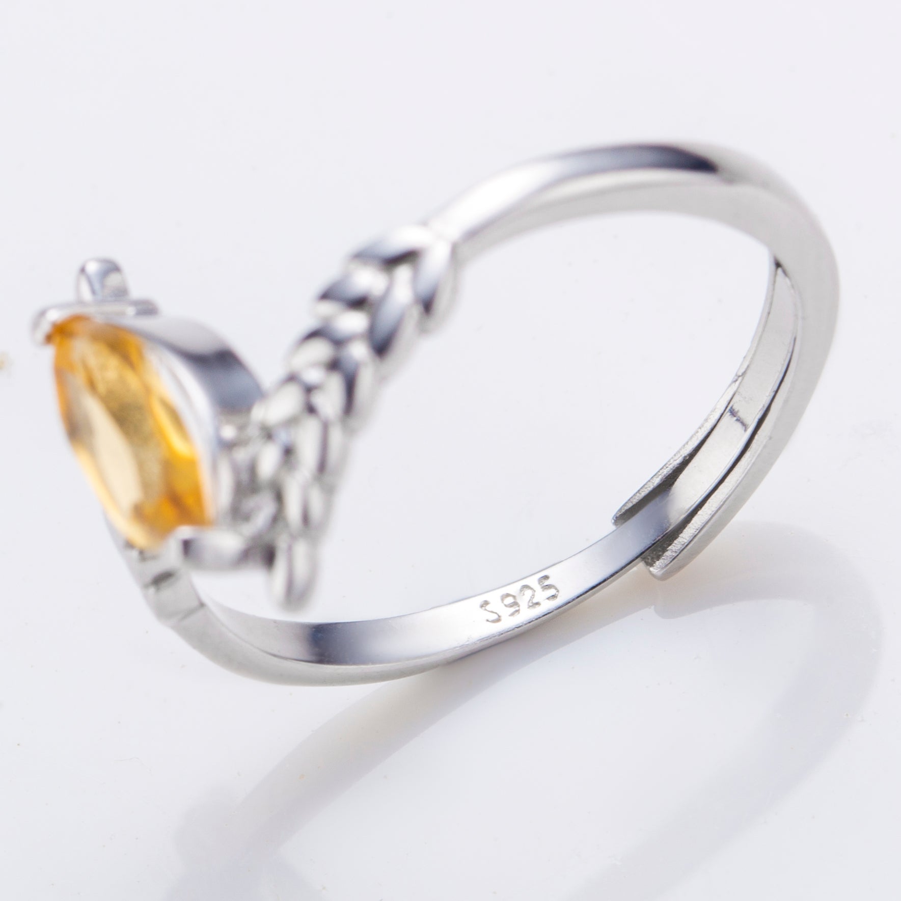 This is a fashion sterling silver ring with natural gemstone of Citrine, adjustable size, Marquise shape in size 4*8 mm Citrine gemstone. Natural gem ring, silver rings wholesale.