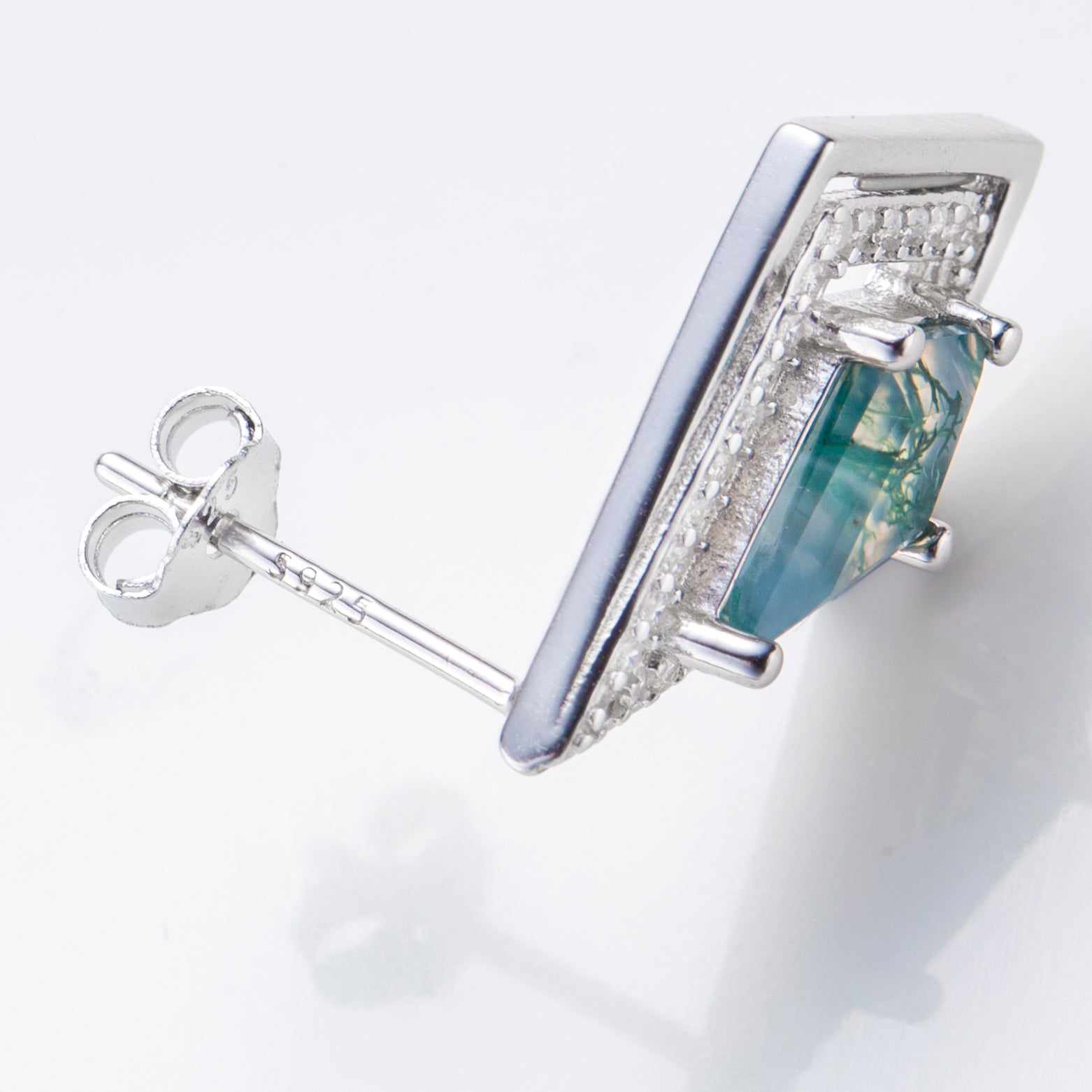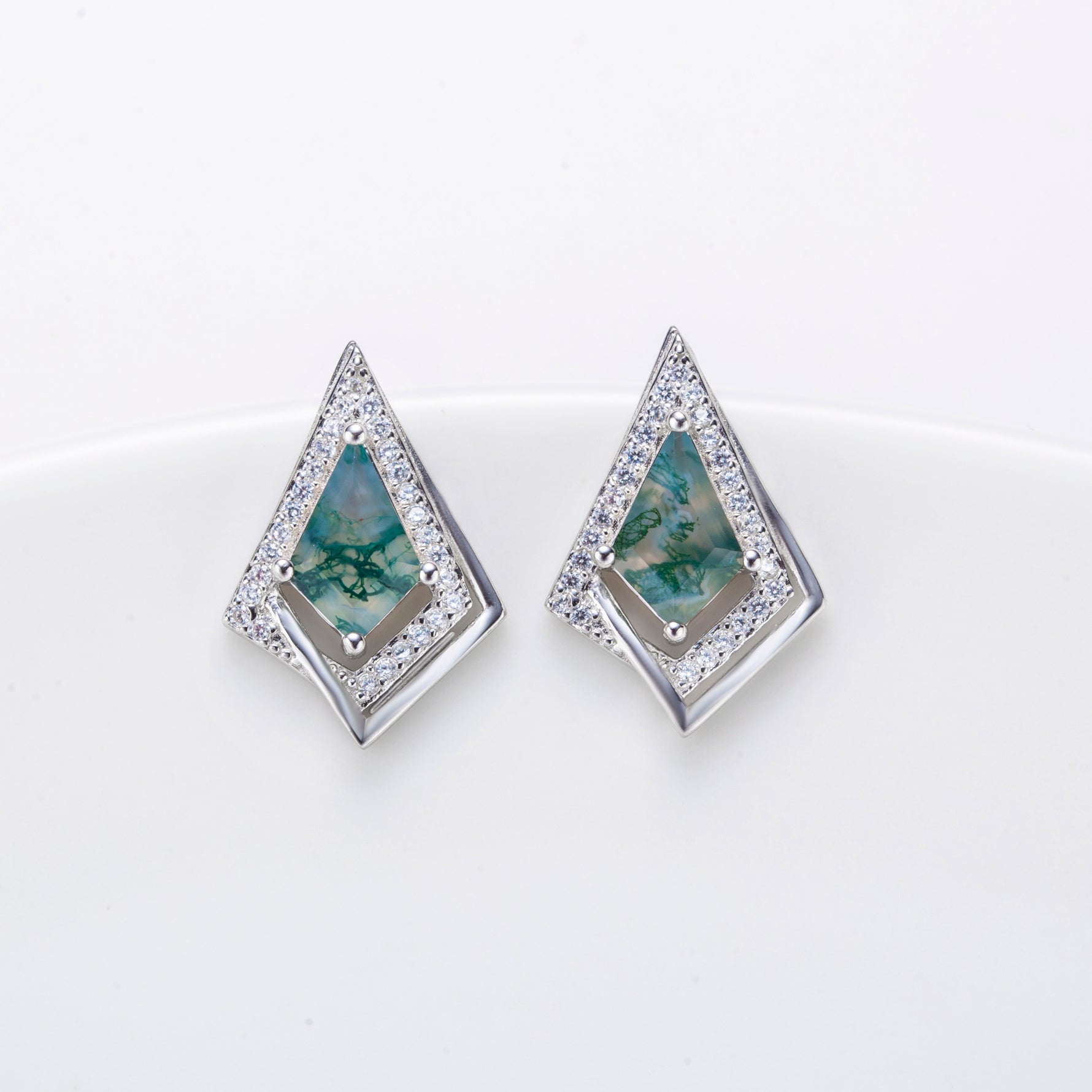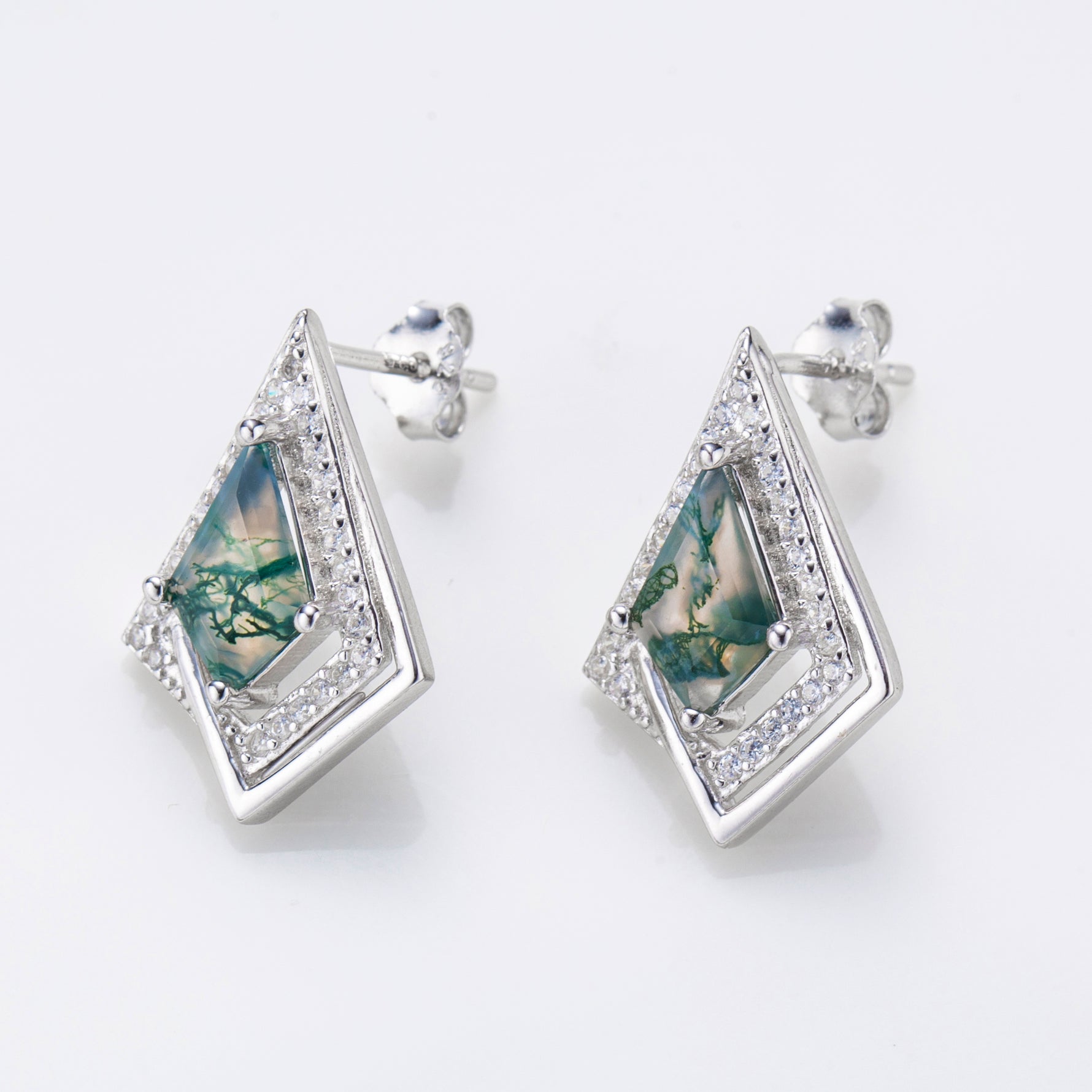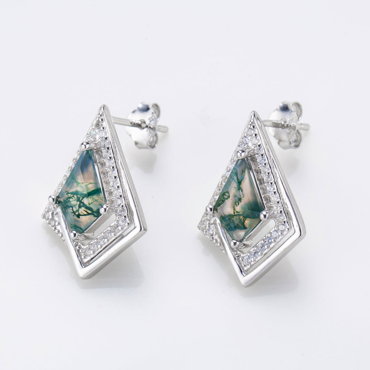 Natural Kite Shape Moss Agate Sterling Silver Stud Earrings
