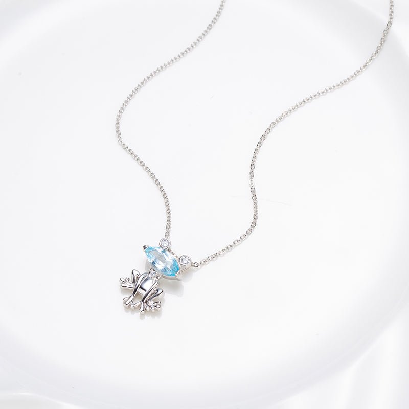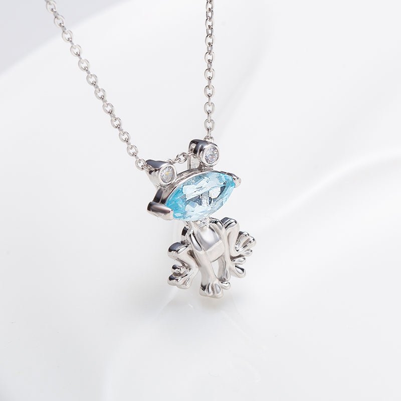 Marquise Sky Blue Topaz Sterling Silver Frog Pendant Necklace