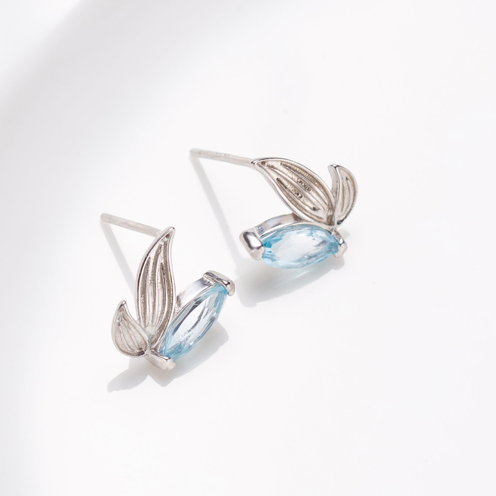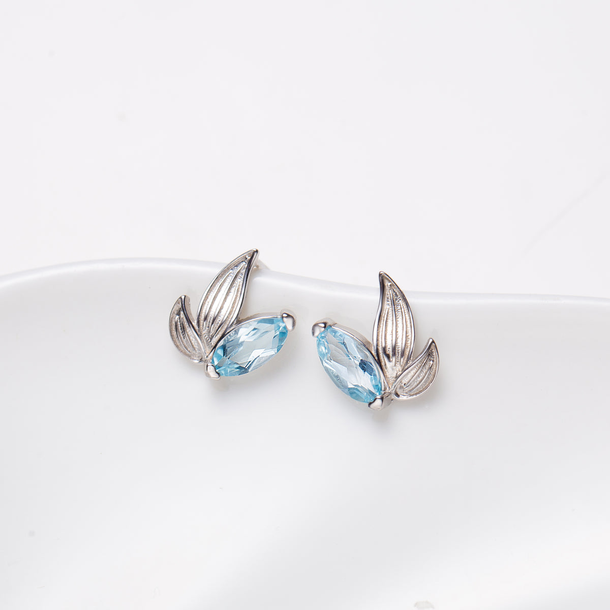Fashion sterling silver earrings with natural gemstone of Sky Blue Topaz, marquise shape in size 4*8 mm. Natural gem earrings, silver earrings wholesale.
