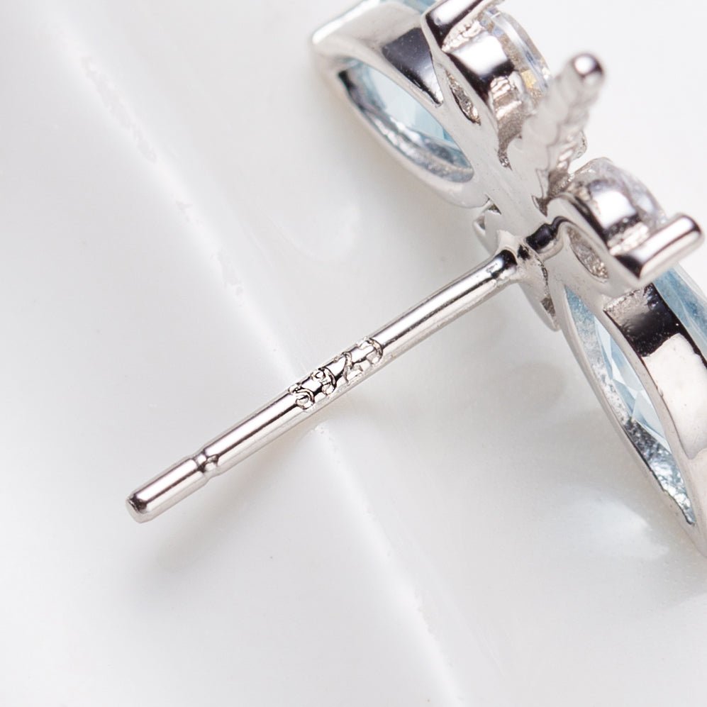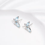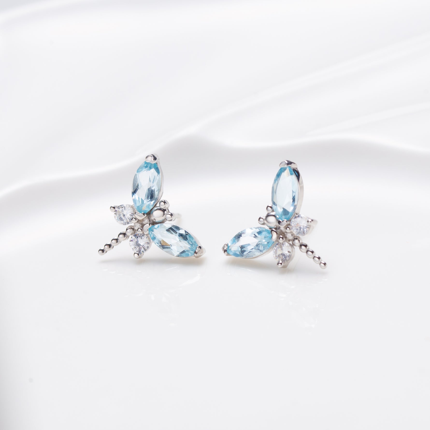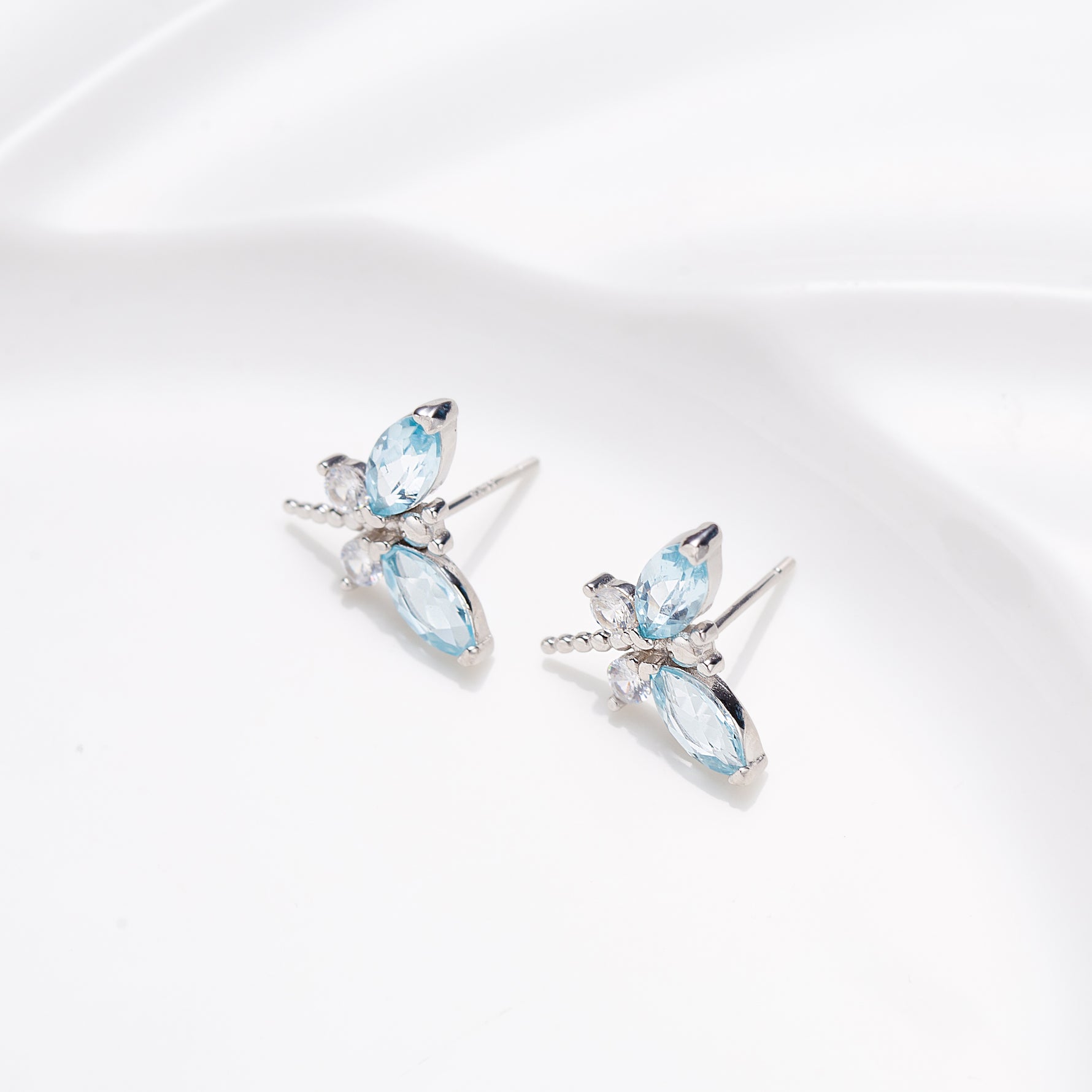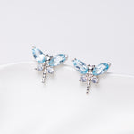 Natural Sky Blue Topaz Dragonfly Sterling Silver Stud Earrings