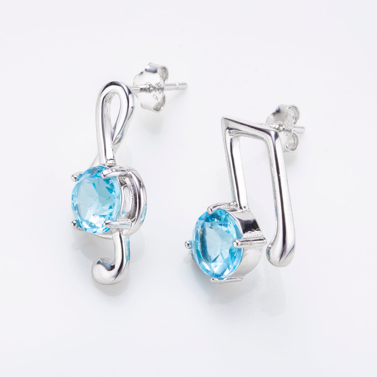 Natural Sky Blue Topaz Sterling Silver Note Earrings