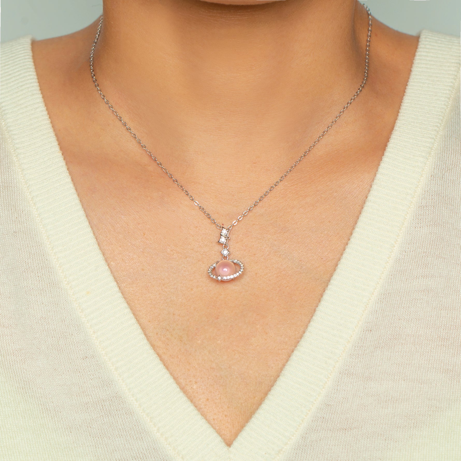18-Inch Rose Quartz Galaxy Necklace in Sterling Silver
