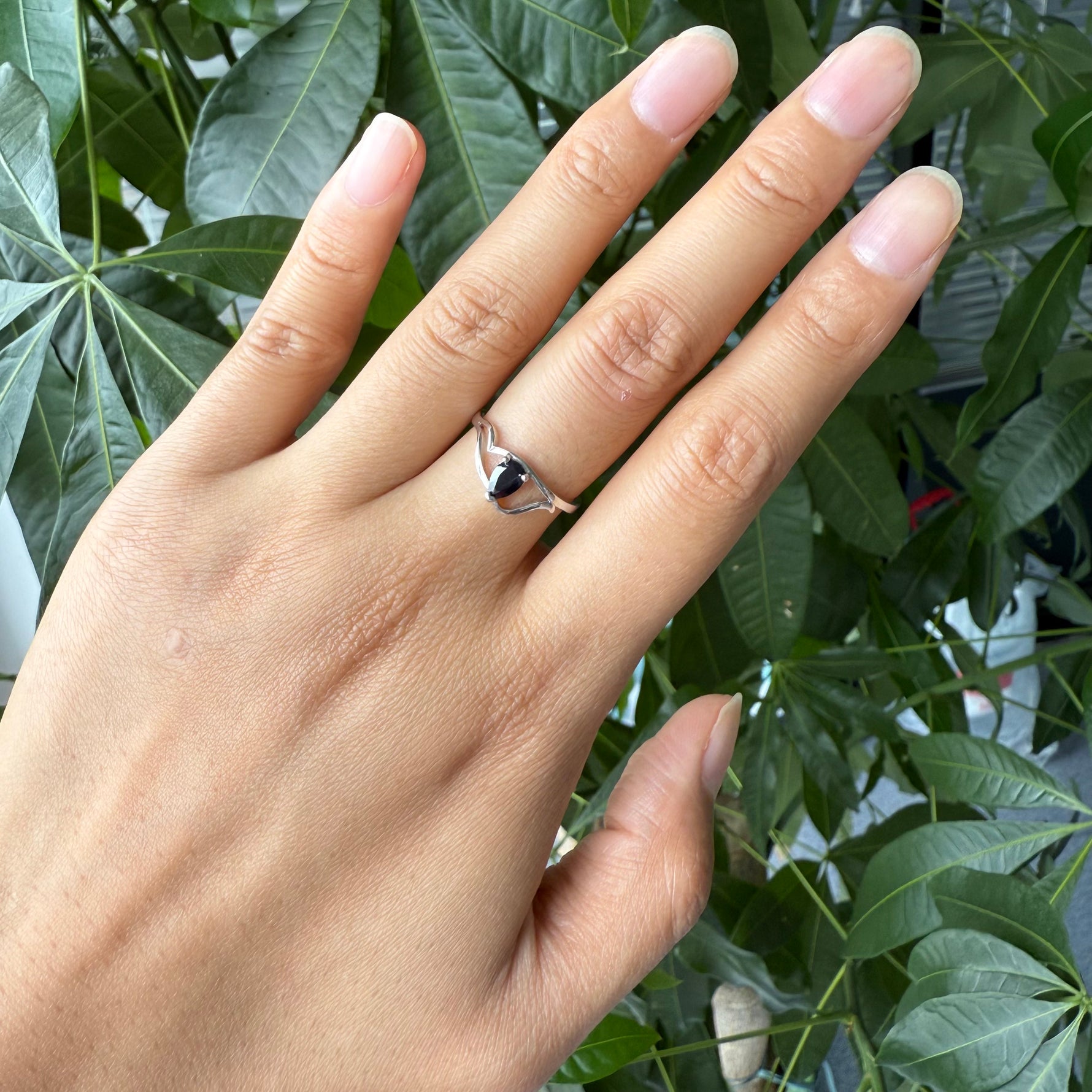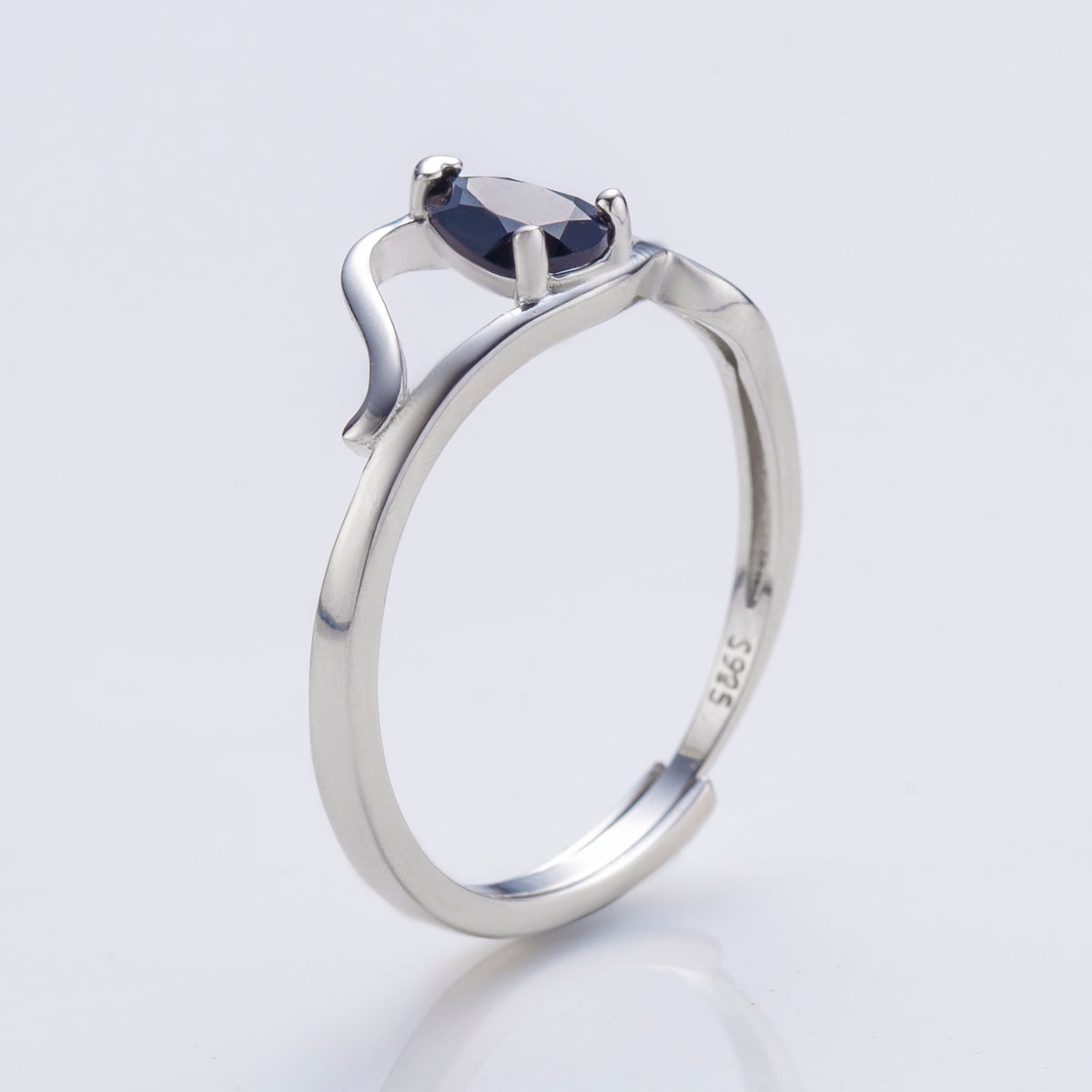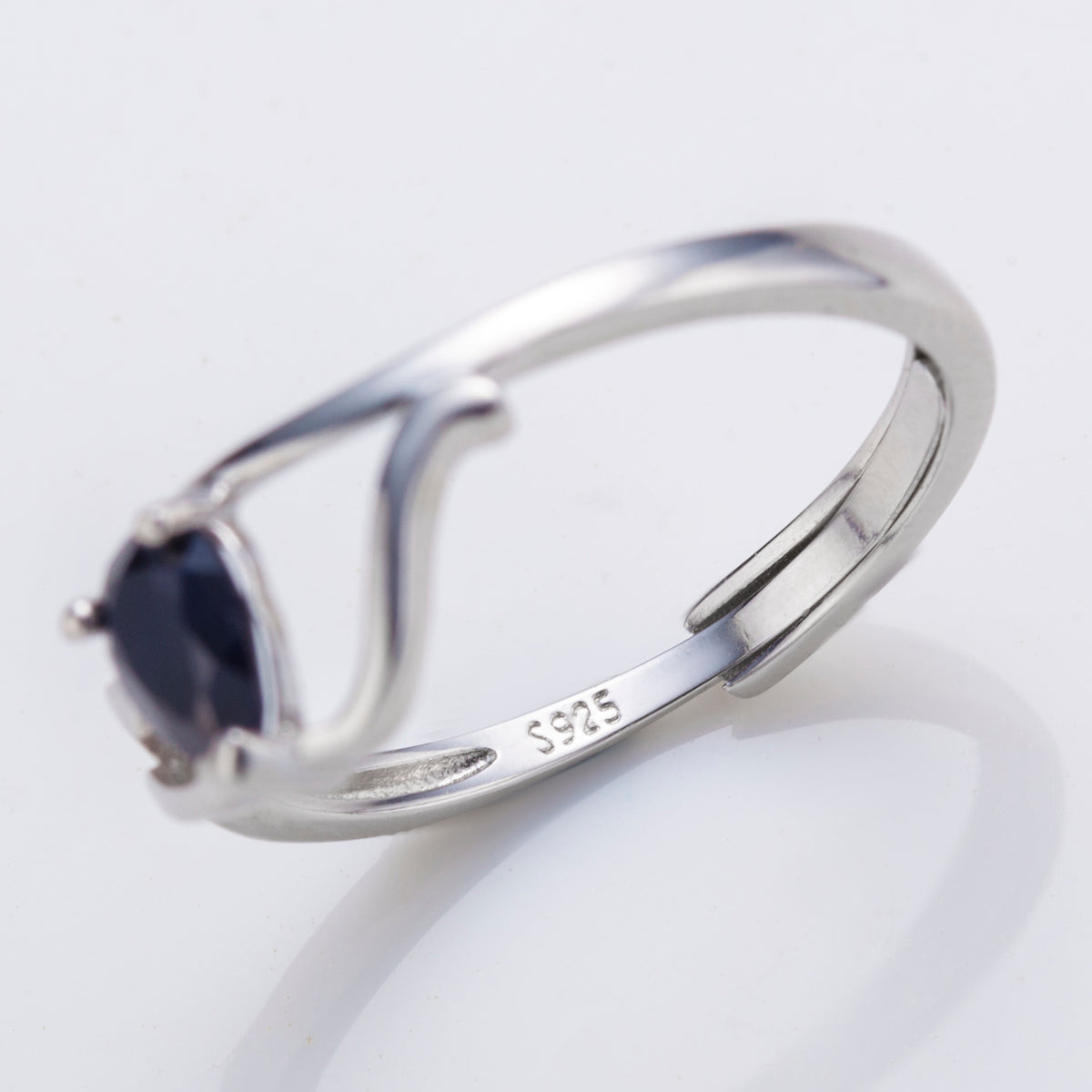 This is a fashion sterling silver ring with natural gemstone of Sapphire, adjustable size, pear shape in size 4*6 mm Sapphire gemstone. Natural gem ring, silver rings wholesale.