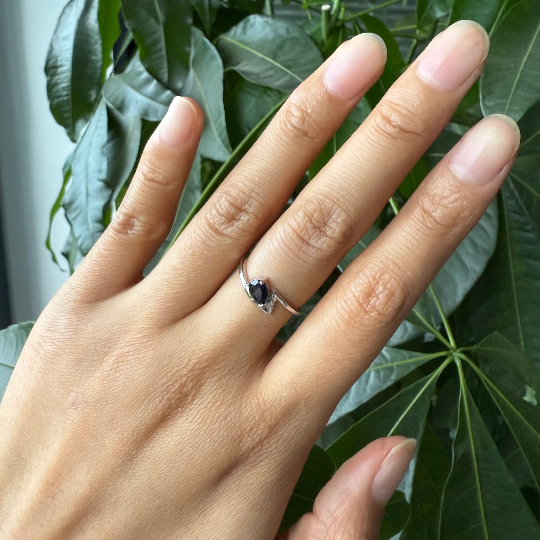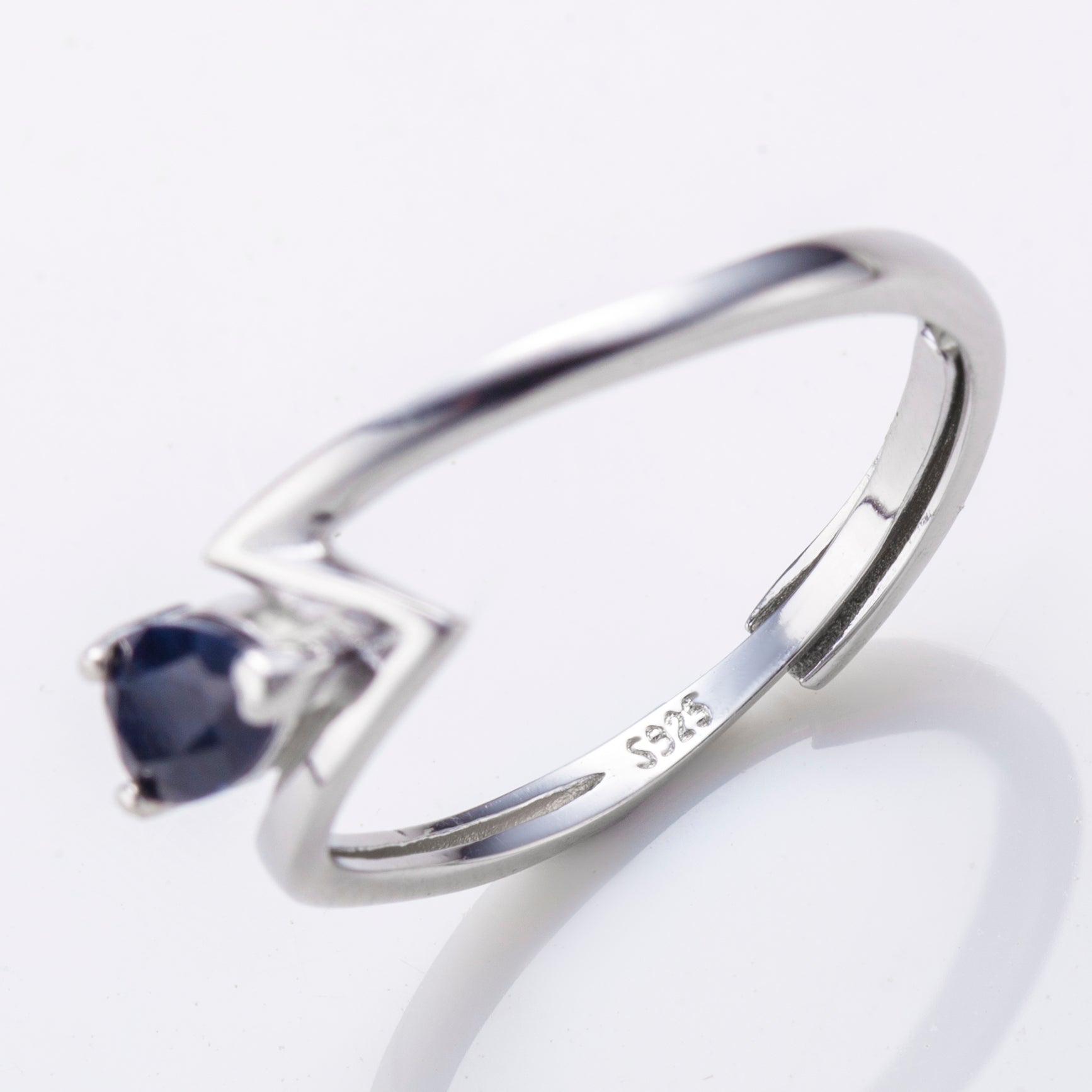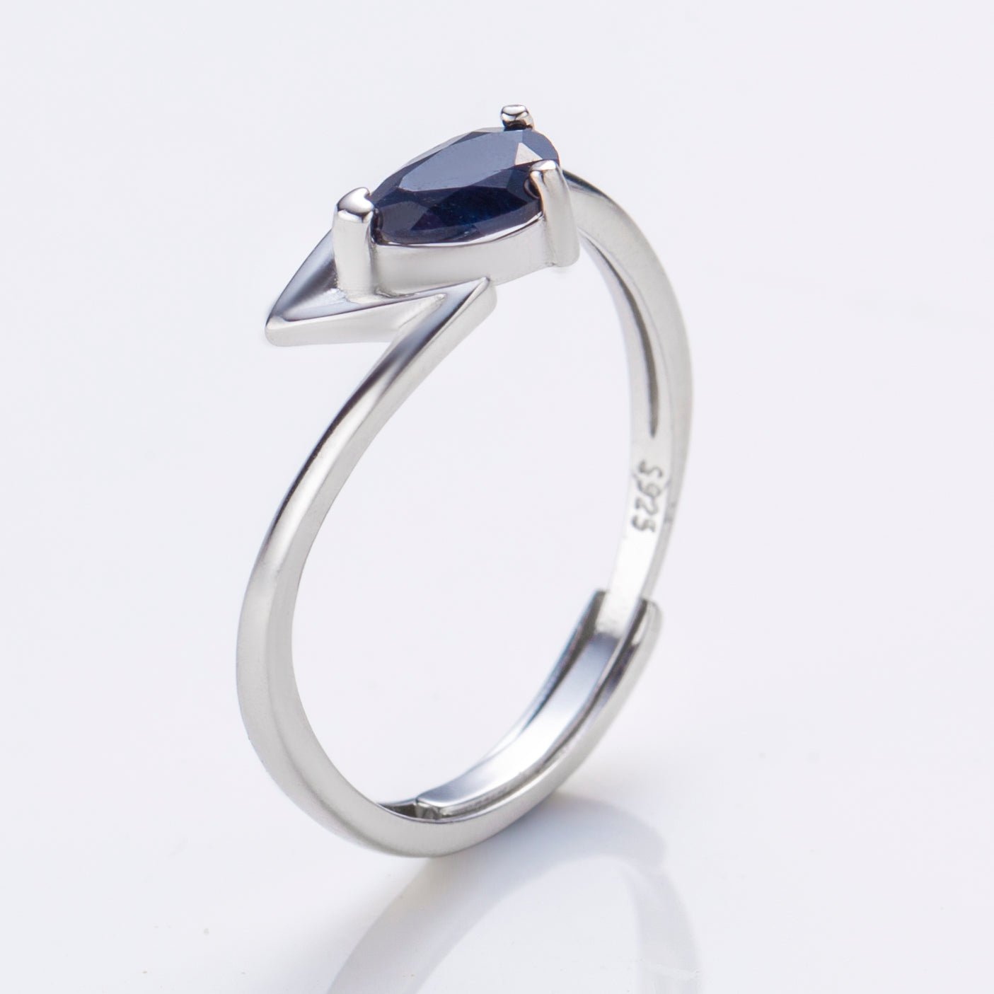 This is a fashion sterling silver ring with natural gemstone of Sapphire, adjustable size, pear shape in size 4*6 mm Sapphire gemstone. Natural gem ring, silver rings wholesale.