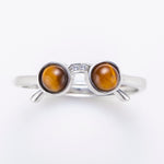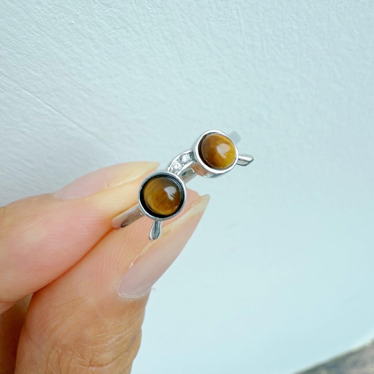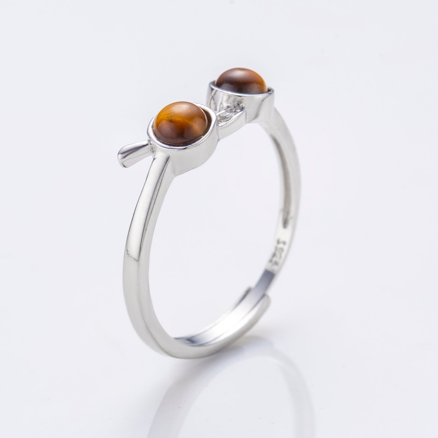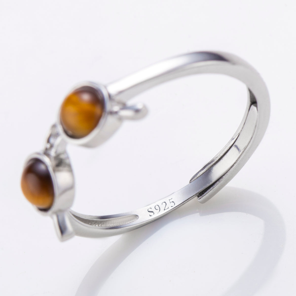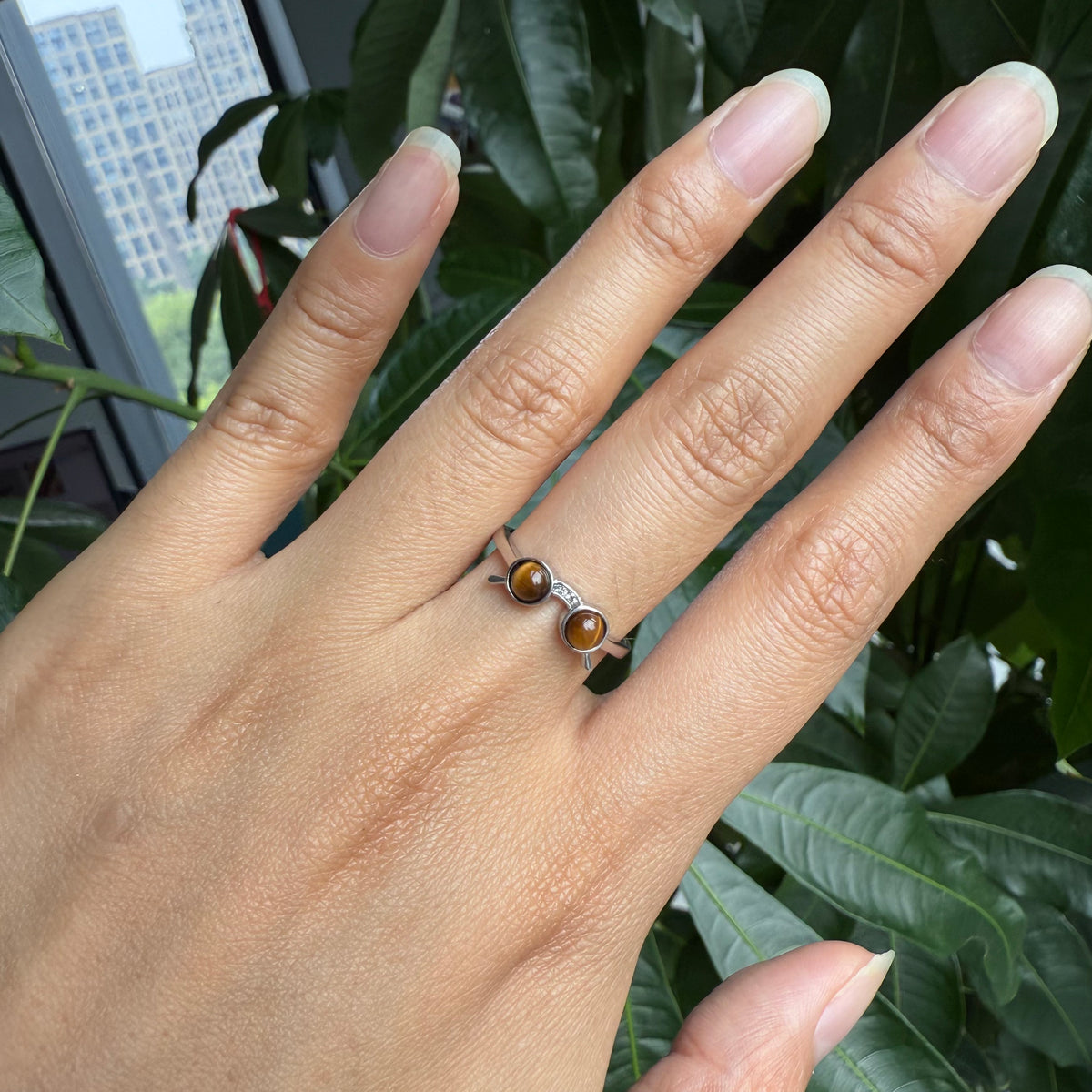 This is a fashion sterling silver ring with natural gemstone of Tiger's Eye, adjustable size, cabochon round shape in size 4*4 mm Tiger's Eye gemstone. Natural gem ring, silver rings wholesale.