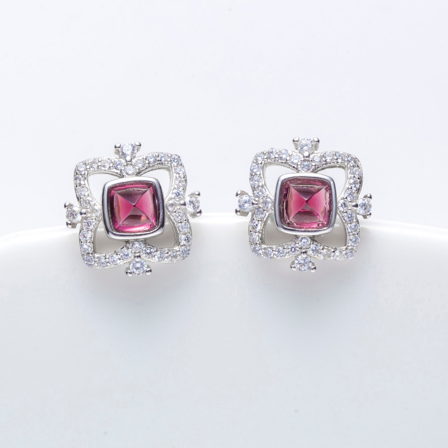 Natural Sugarloaf Rhodolite Garnet Sterling Silver Stud Earrings
